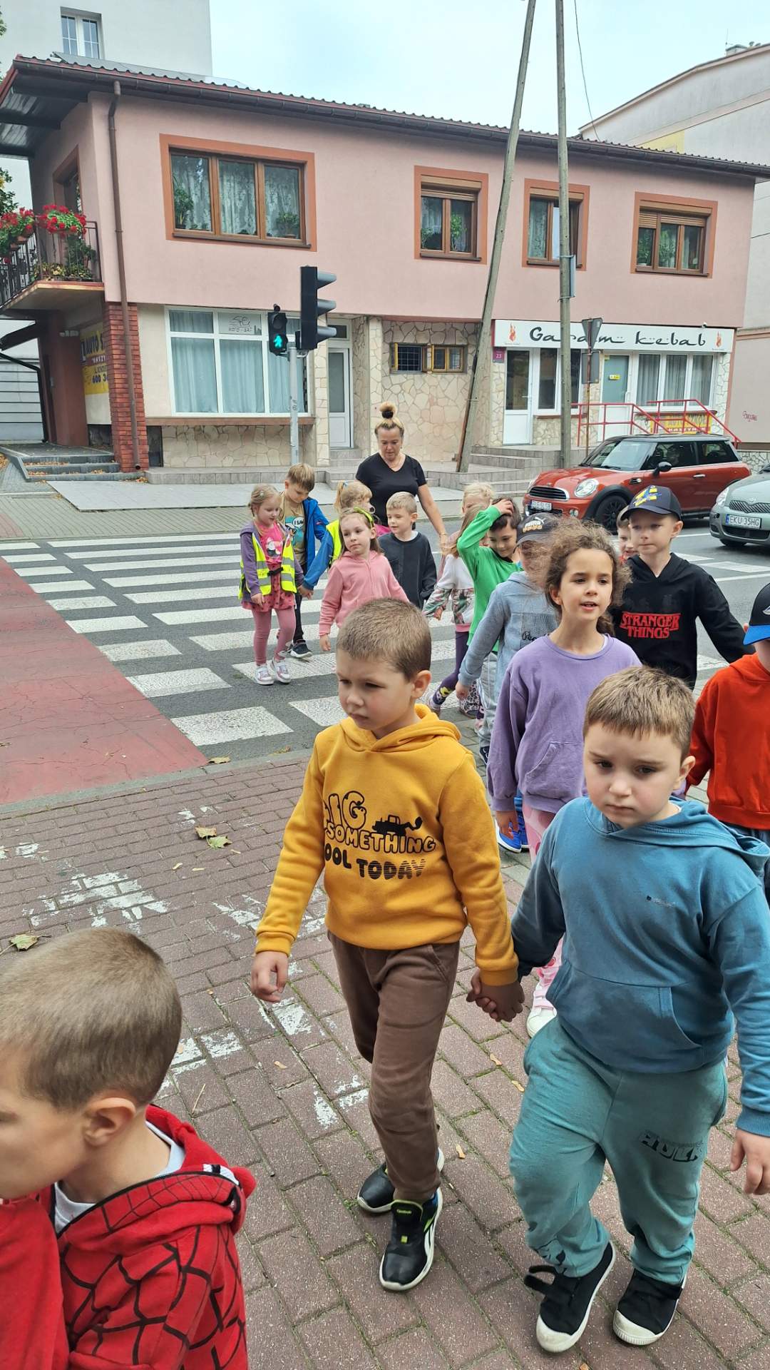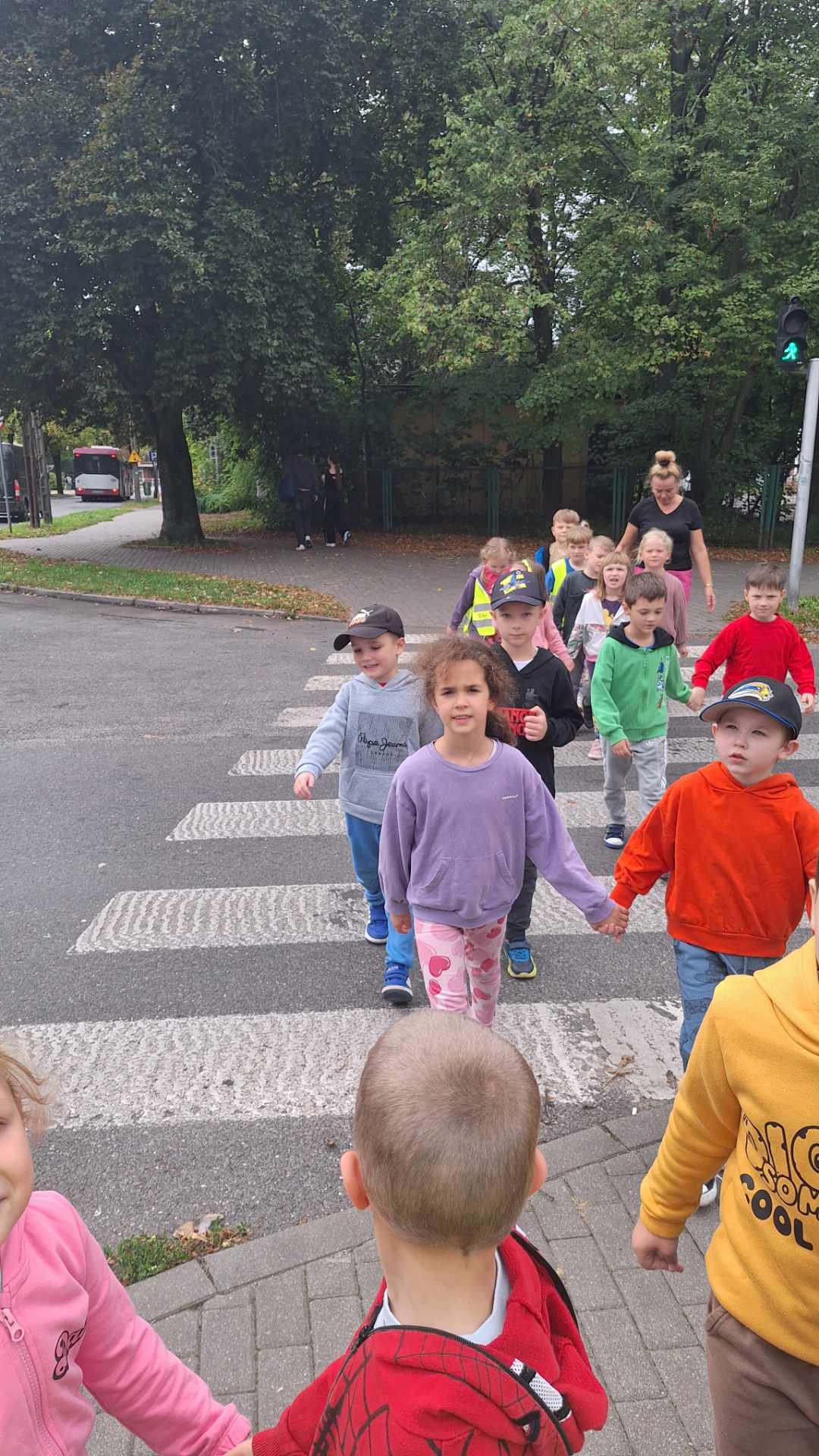 W dniu dzisiejszym "Wiewióreczki" wybrały się na pobliskie skrzyżowanie. Celem wyjścia było kształtowanie nawyku właściwego zachowania się w ruchu drogowym oraz utrwalenie podstawowych zasad poruszania się po drogach. Dzieci obserwowały ruch uliczny, znaki drogowe, ćwiczyły umiejętność poruszania się w pobliżu jezdni oraz prawidłowego przechodzenia przez pasy.