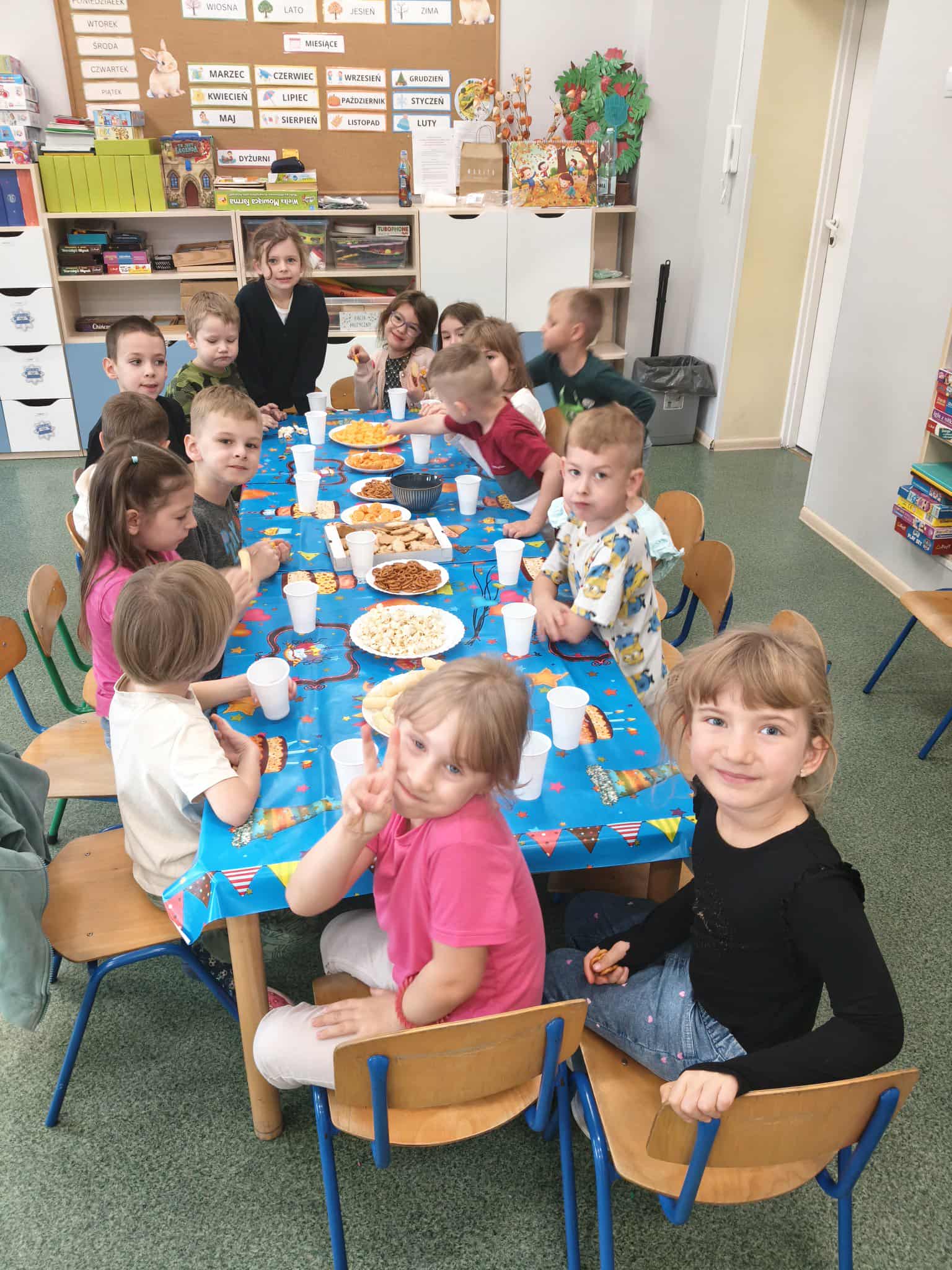 Dzisiaj świętowaliśmy w przedszkolu Dzień Chłopca. Dziewczynki złożyły chłopcom życzenia, wręczyły drobne prezęciki. Rodzice zapewnili słodki poczęstunek.