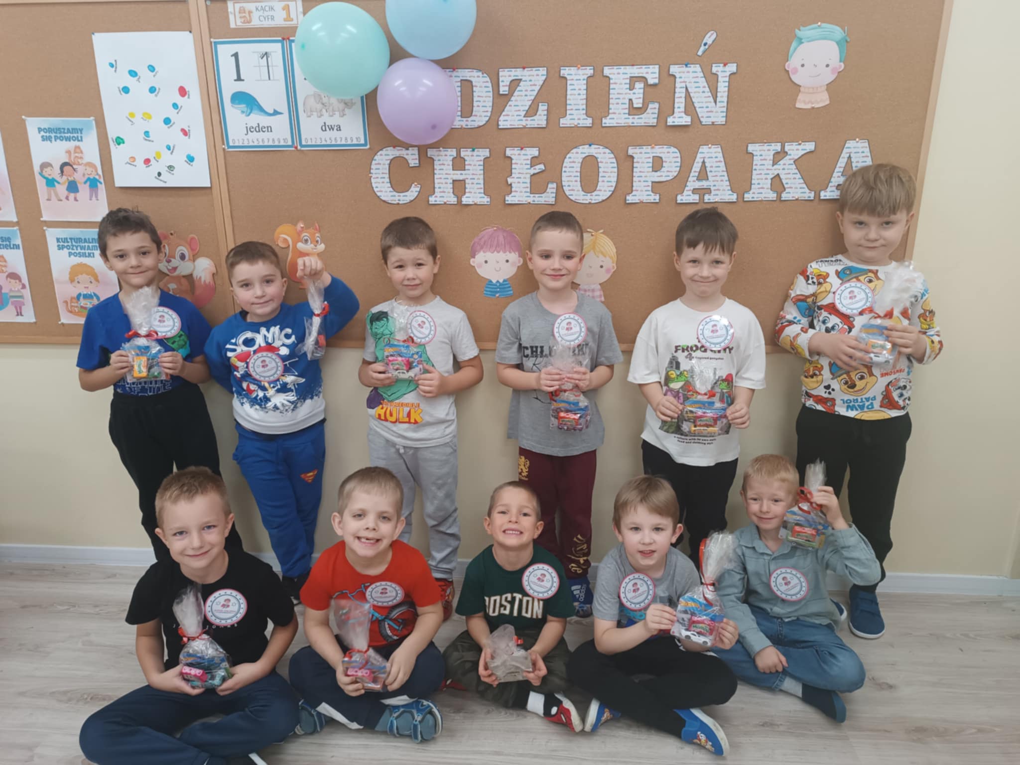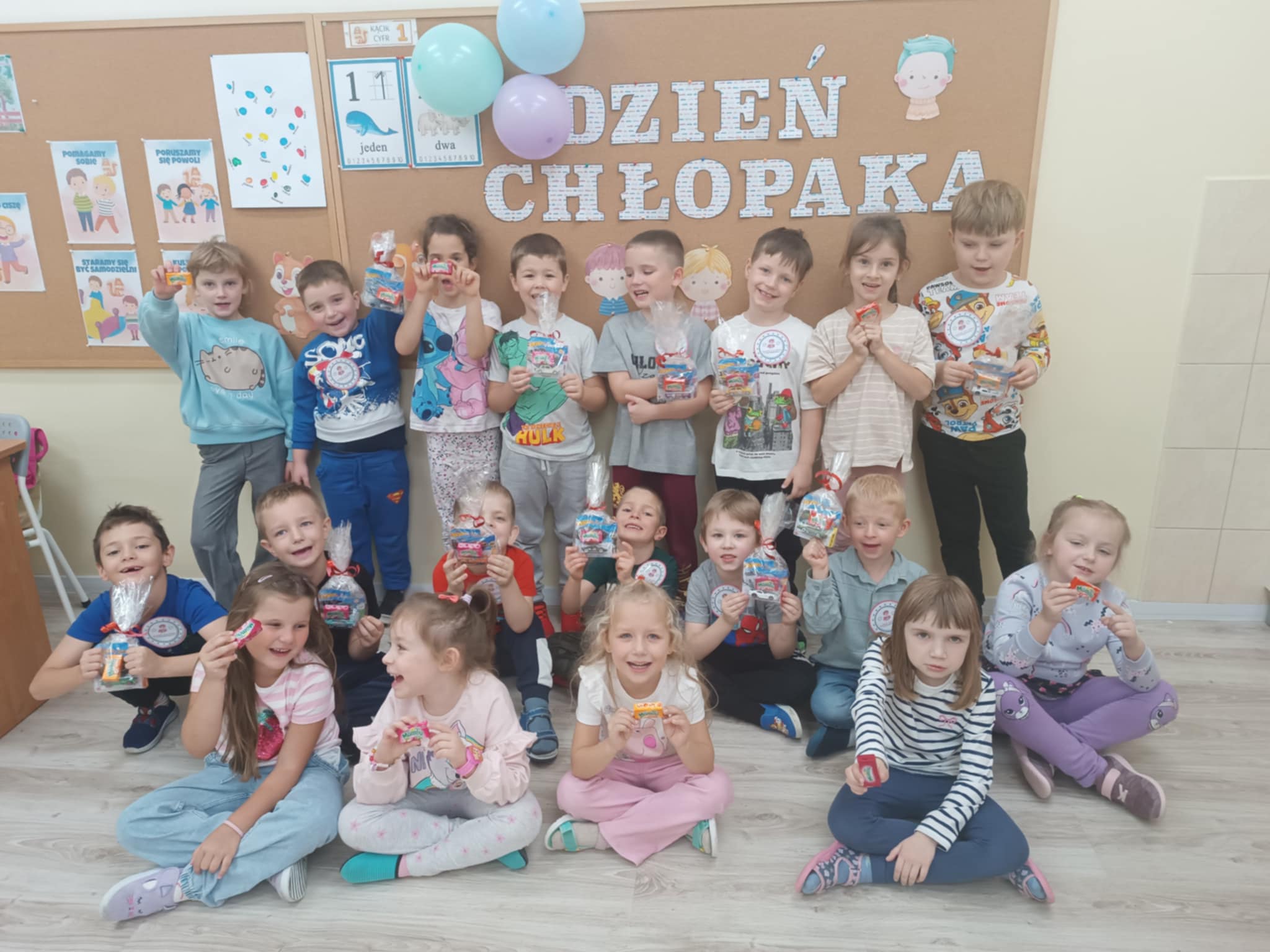 Dnia 30 września swoje święto obchodzą wszyscy chłopcy - mali i duzi. W naszej grupie również uczciliśmy ten dzień. Z tej okazji dziewczynki wraz z paniami złożyły chłopcom najserdeczniejsze życzenia, zaśpiewały uroczyste "Sto lat", wręczyły drobne upominki oraz medale "Super chłopaka". Chłopcy w podzięce podarowali dziewczynkom słodkie niespodzianki. W tym dniu nie zabrakło również wspólnych zabaw i tańców przy muzyce oraz konkursów (m.in. zaplatanie warkocza na czas, rozpoznawanie marki samochodu d logo). Dziękujemy Rodzicom za zakup upominków oraz przygotowanie słodkiego poczęstunku. To był dzień pełen wrażeń, atrakcji, radości oraz dobrej zabawy!