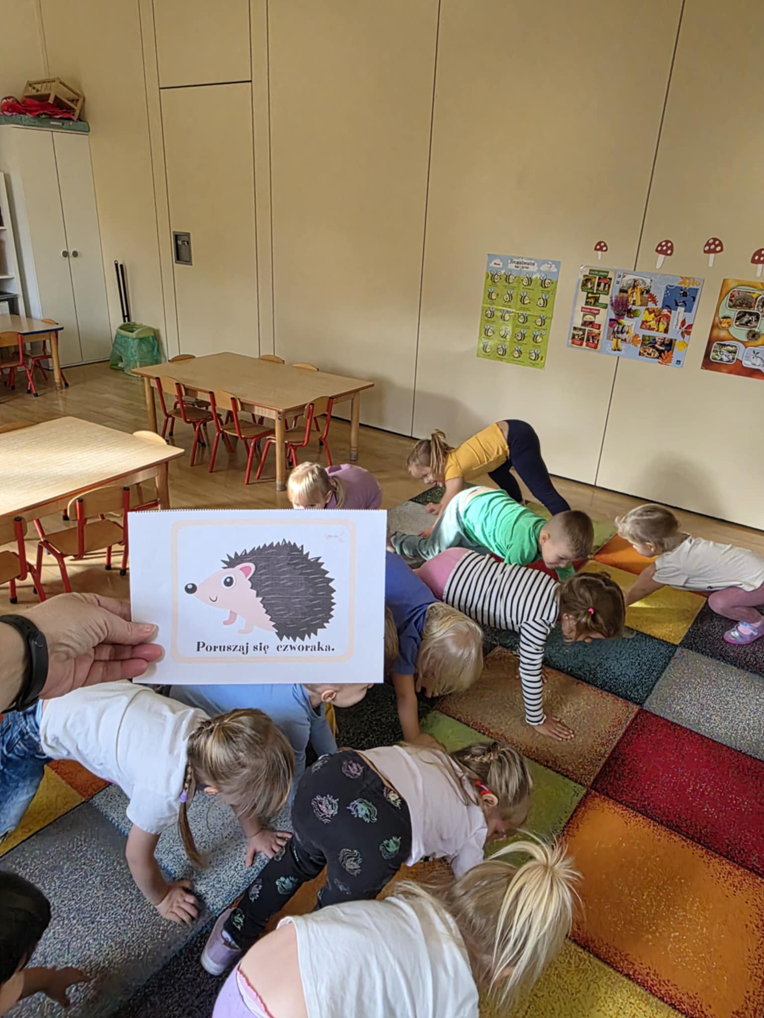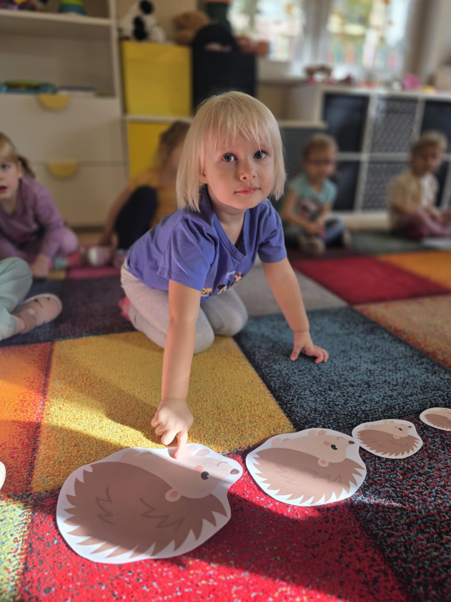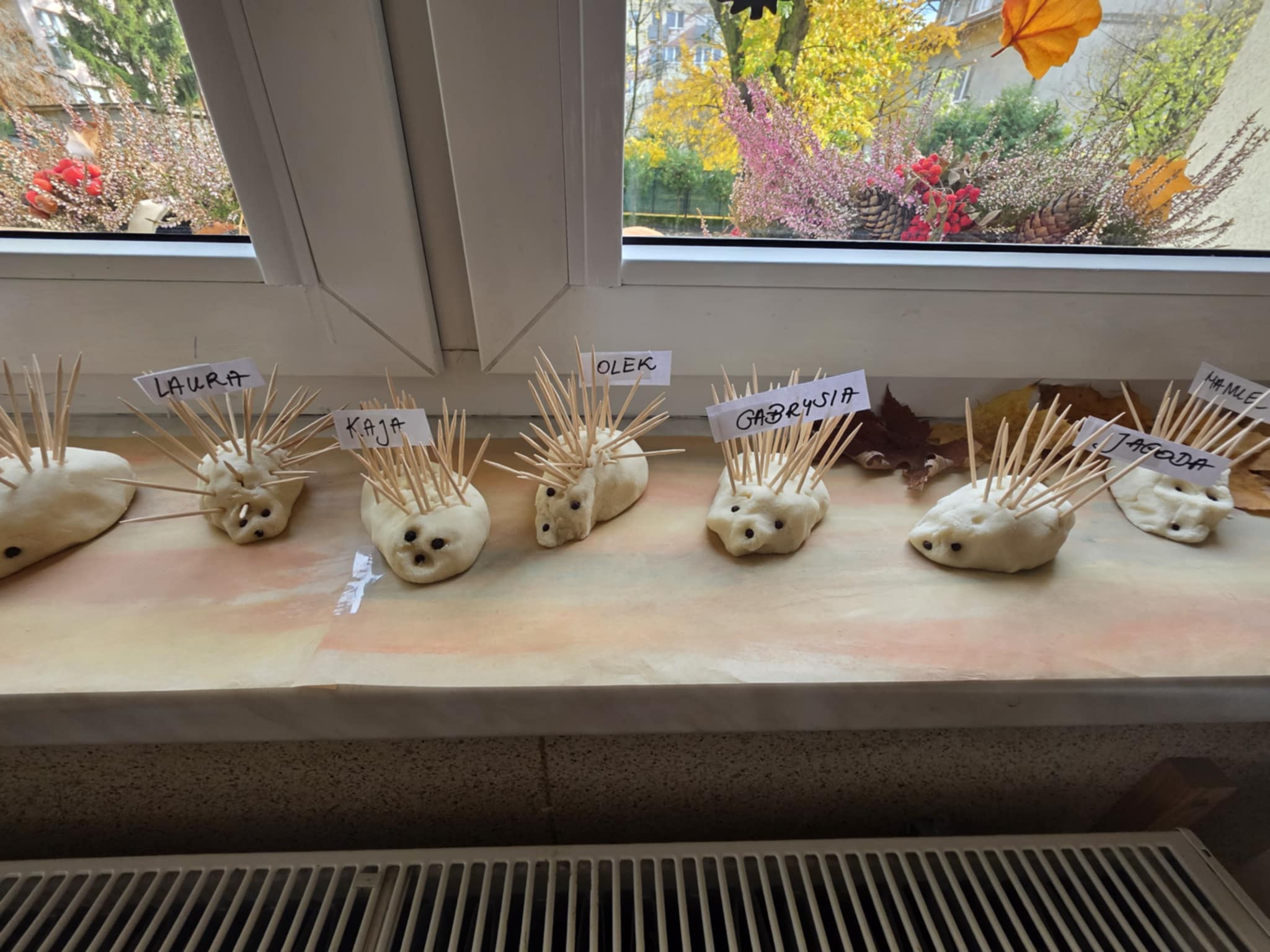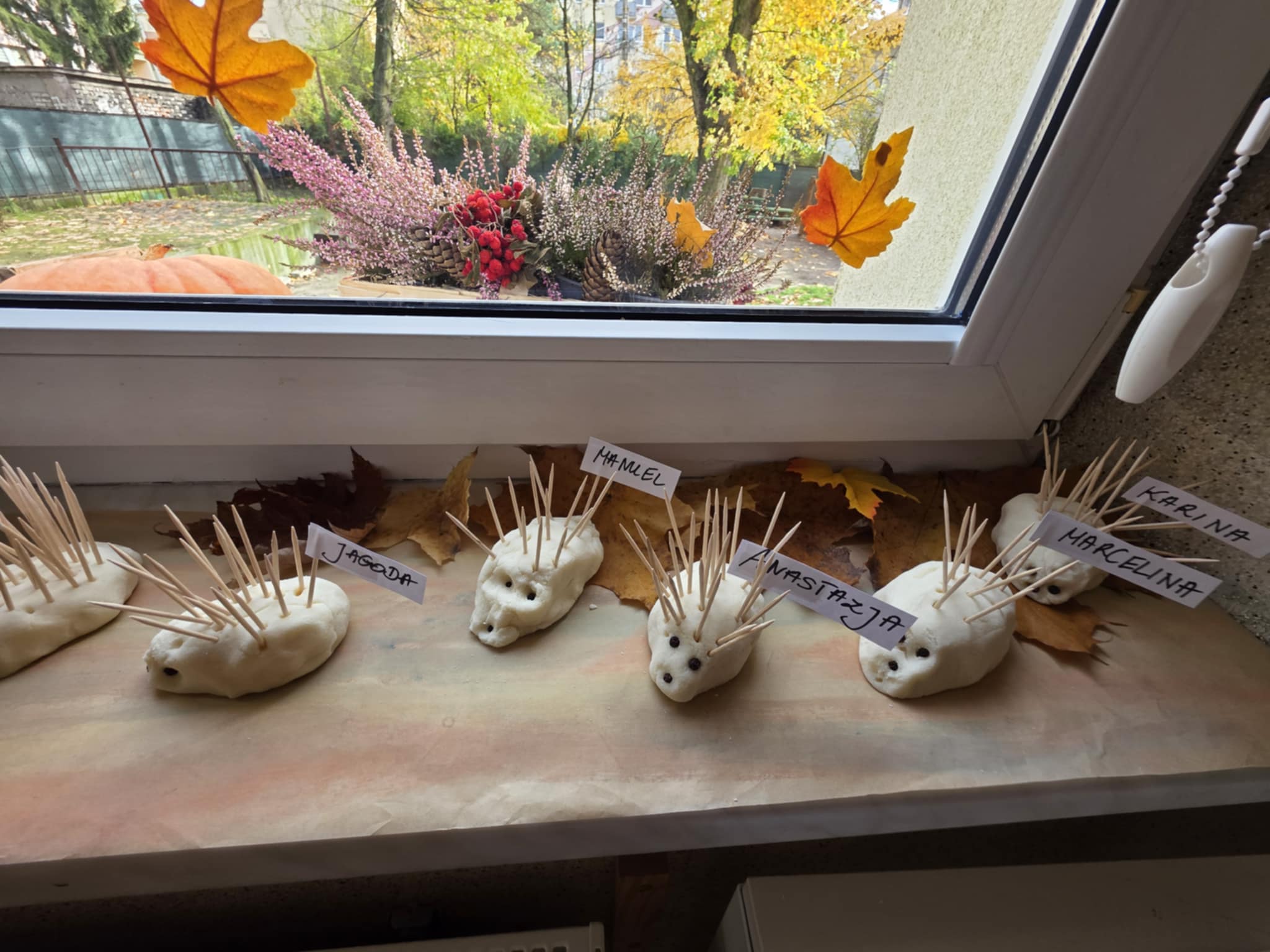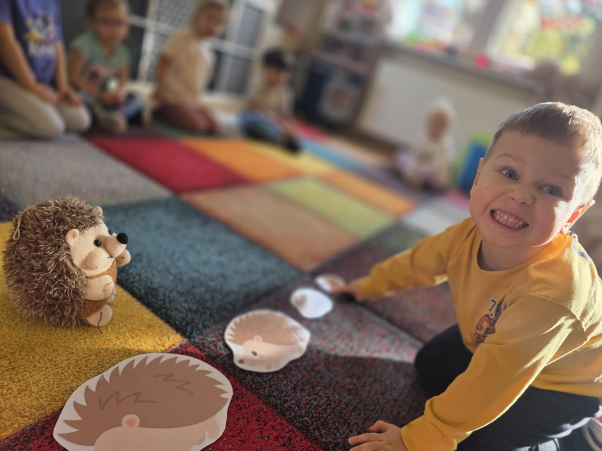 Z okazji Dnia Jeża dzieci uczestniczyły w zajęciach poświęconych tym sympatycznym zwierzętom. Na początku poznały wygląd jeża oraz dowiedziały się, jakie ma części ciała – kolce, oczy, nosek, łapki i uszka. Rozmawiały także o tym, gdzie jeż mieszka, co lubi jeść i jak spędza zimę. Podczas zajęć dzieci doskonaliły umiejętność porównywania wielkości, układając jeże od najmniejszego do największego i od największego do najmniejszego. Następnie z zaangażowaniem układały puzzle z wizerunkiem jeża, ćwicząc spostrzegawczość i koncentrację uwagi. Na zakończenie dzieci wykonały pracę plastyczną z masy solnej – własne jeżyki. Każdy jeż był wyjątkowy i ozdobiony według pomysłu autora. Praca ta rozwijała kreatywność oraz zdolności manualne.
