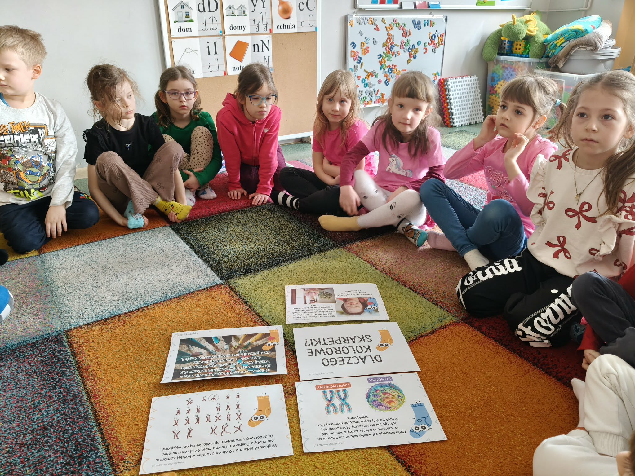 Dzisiaj w naszej grupie odbył sie Dzień Kolorowej Skarpetki. Dzieci dowiedziały się czym jest ZD oraz co go powoduje. Uczestniczyły w zabawach edukacyjnych, które rozwijały w dzieciach umiejetność budowania wypowiedzi na określony temat, spostrzegawczość oraz umiejętności manualne.