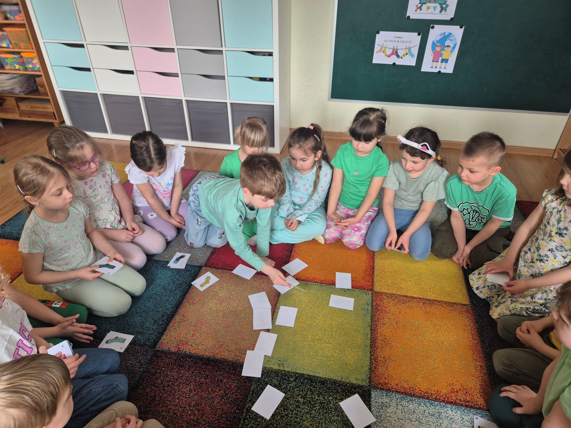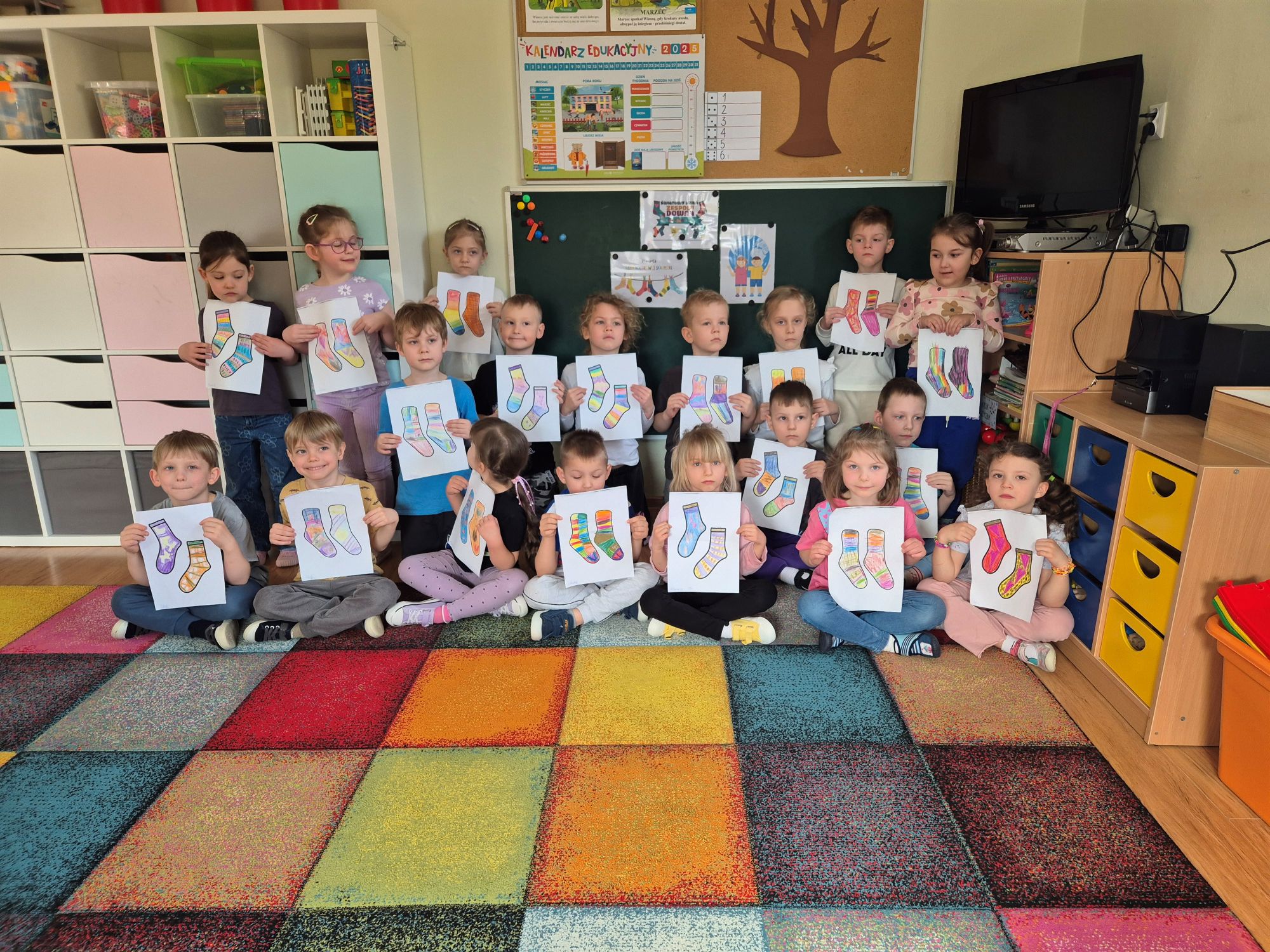 20 marca obchodziliśmy w naszej grupie wyjątkowy Dzień Kolorowej Skarpetki, który jest symbolem solidarności z osobami z zespołem Downa oraz wyrazem akceptacji różnorodności. Podczas dzisiejszych zajęć pedagog specjalny rozmawiałam z dziećmi, o tym, że ludzie mogą się od siebie różnić, ale każdy z nas jest tak samo ważny.