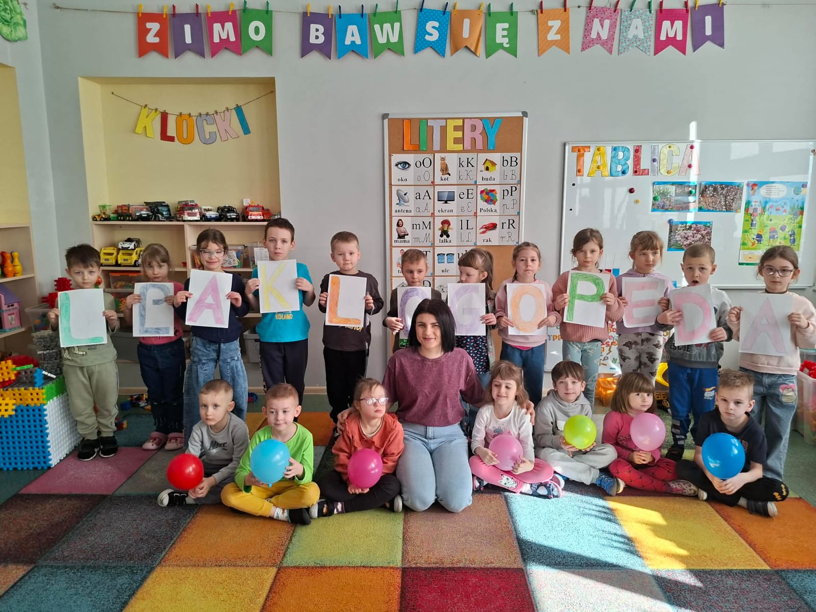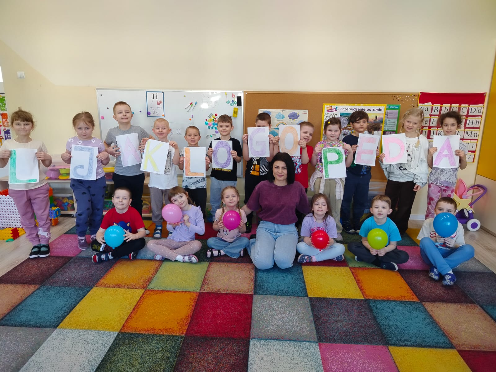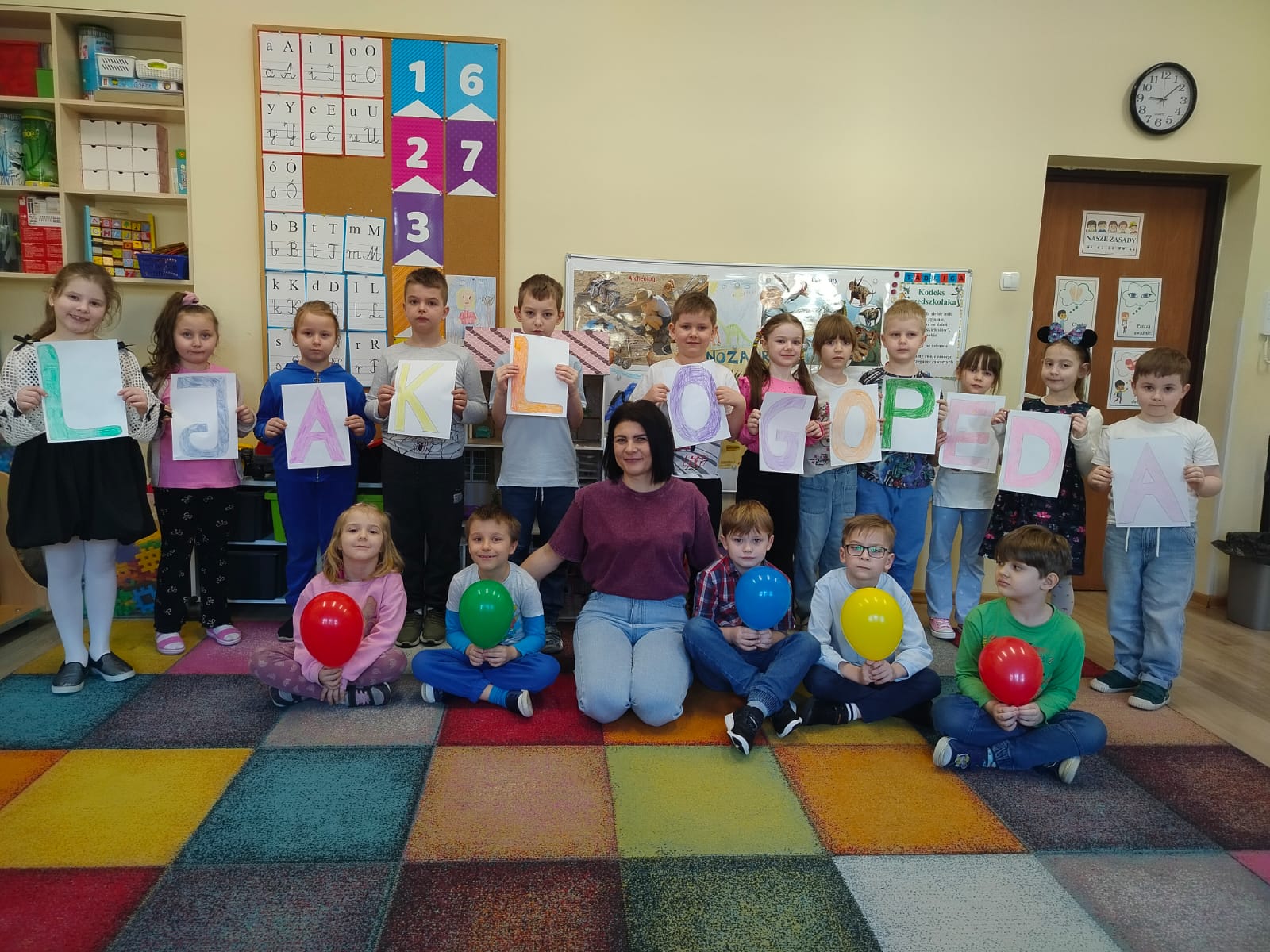 6 marca obchodzimy Europejski Dzień Logopedy, z tej okazji w najstarszych grupach (VII, VIII, IX), neurologopeda Pani Katarzyna Kucharska przeprowadziła zajęcia logopedyczne, których celem było usprawnianie aparatu artykulacyjnego oraz wydłużenie fazy oddechowej. Zajęcia zwieńczył krótki wierszyk pt. "O logopedzie w gabinecie".