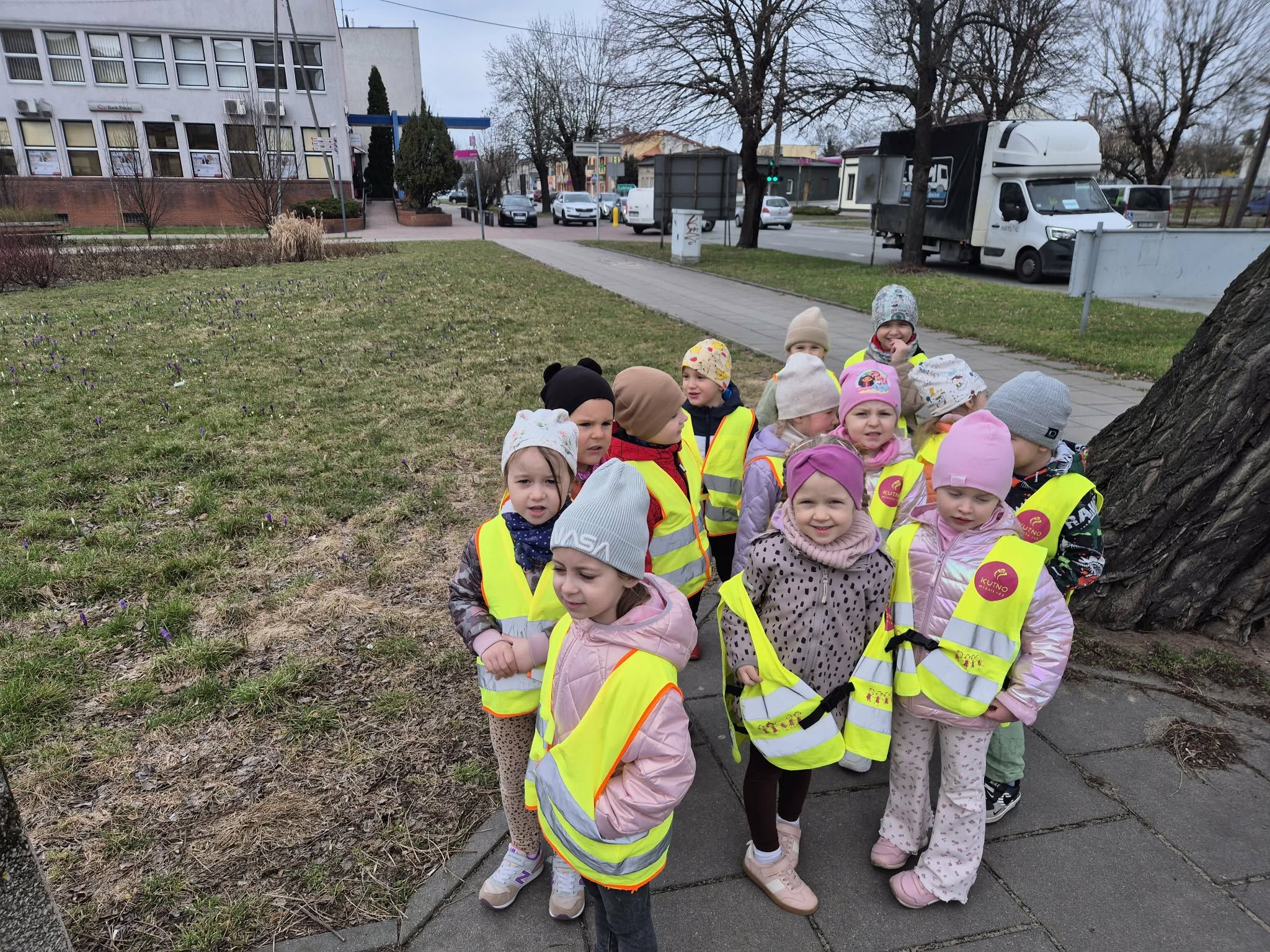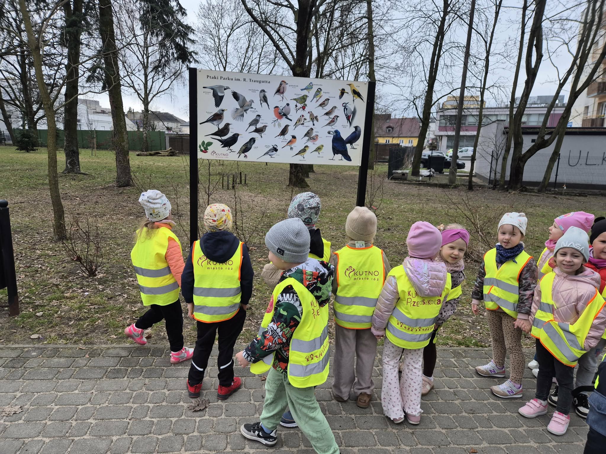 Dziś w ramach zajęć z cyklu "Kutnowskie ścieżki przedszkolaka" grupa III "Sarenki" wybrała się na spacer w poszukiwaniu zwierząt i roślin, jakie można spotkać w naszej okolicy. Przedszkolaki poznały najczęściej występujące w Kutnie gatunki drzew, odszukiwały ptaki, a nawet wypatrzyły wiewiórkę.