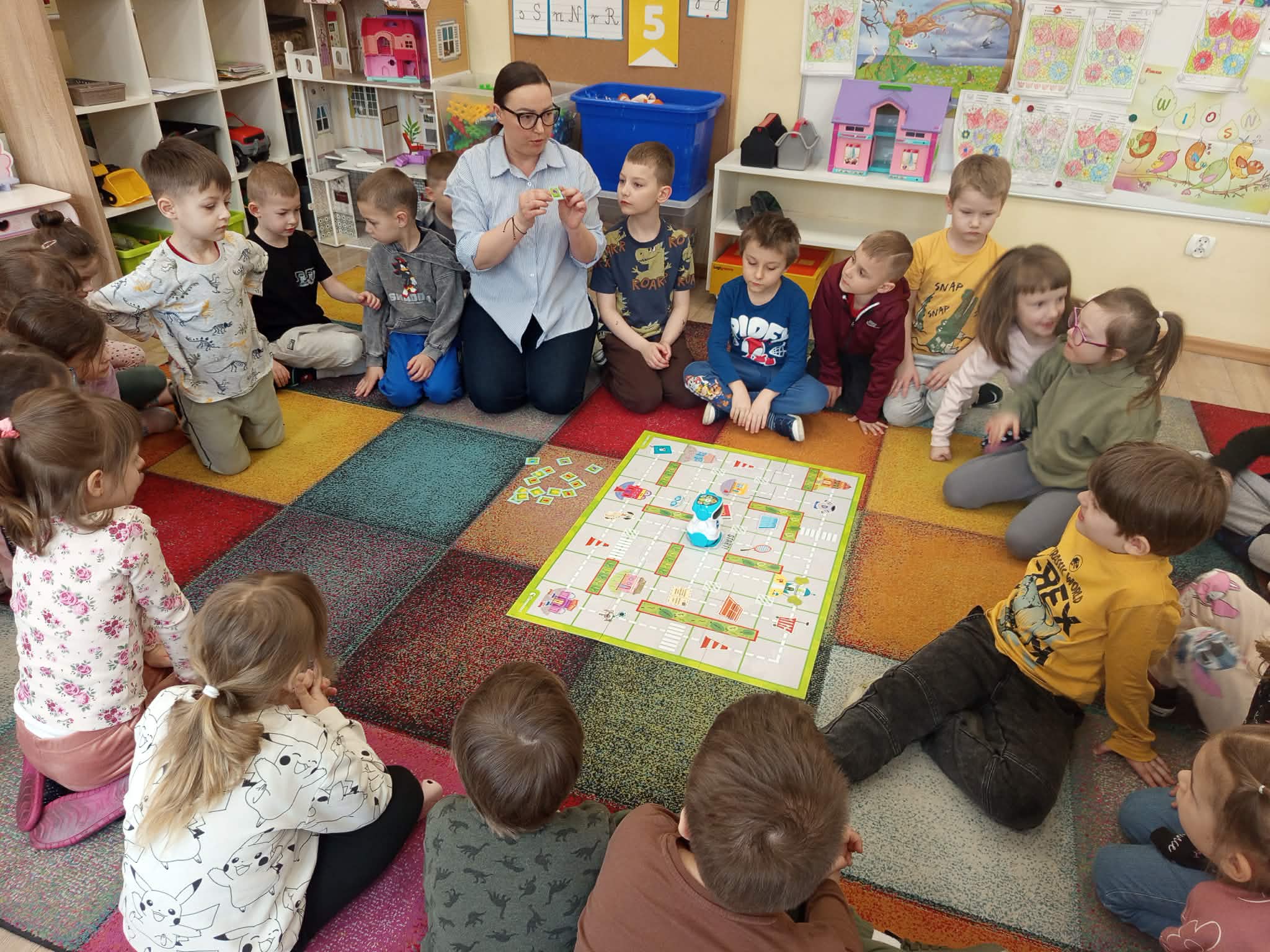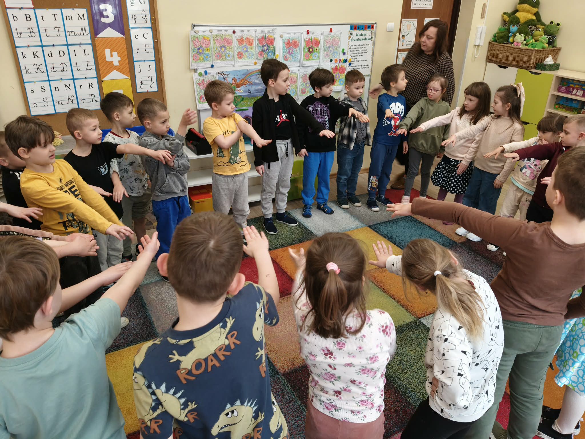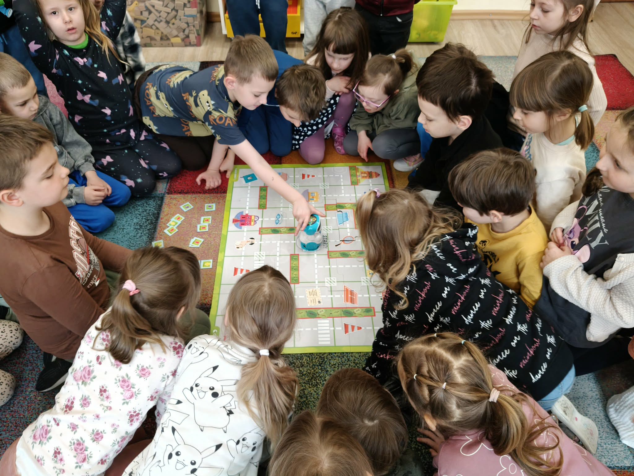 W dniu dzisiejszym, wspólnie z grupą VII "Żabki", zrealizoaliśmy kolejny blok zcęć z innowacji pedagogicznej "Bezpieczeństwo dla wszystkich". Podczas zajęć utrwalaliśmy sobie pojęcia związane z orientacją przestrzenną, na przykładzie piosenki "Woogi Boogi" oraz różnych ćwiczeń np. z klockiem. Świadomość własnego ciała oraz orientacja w przestrzeni są kluczowe dla bezpieczeństwa. Dodatkowo przypomnieliśmy sobie czym jest "oś symetrii". Dzieci miały możliwość zakodowania drogi robota, który miał dotrzeć w określone miejsce. Podczas tej zabawy, dzieci posługiwały się kartonikami kierunkowymi.