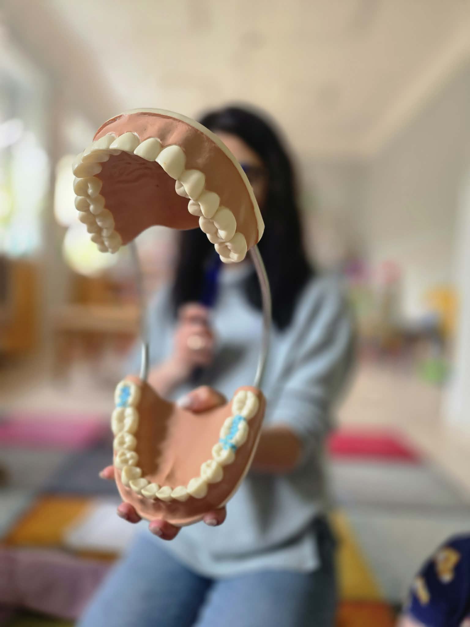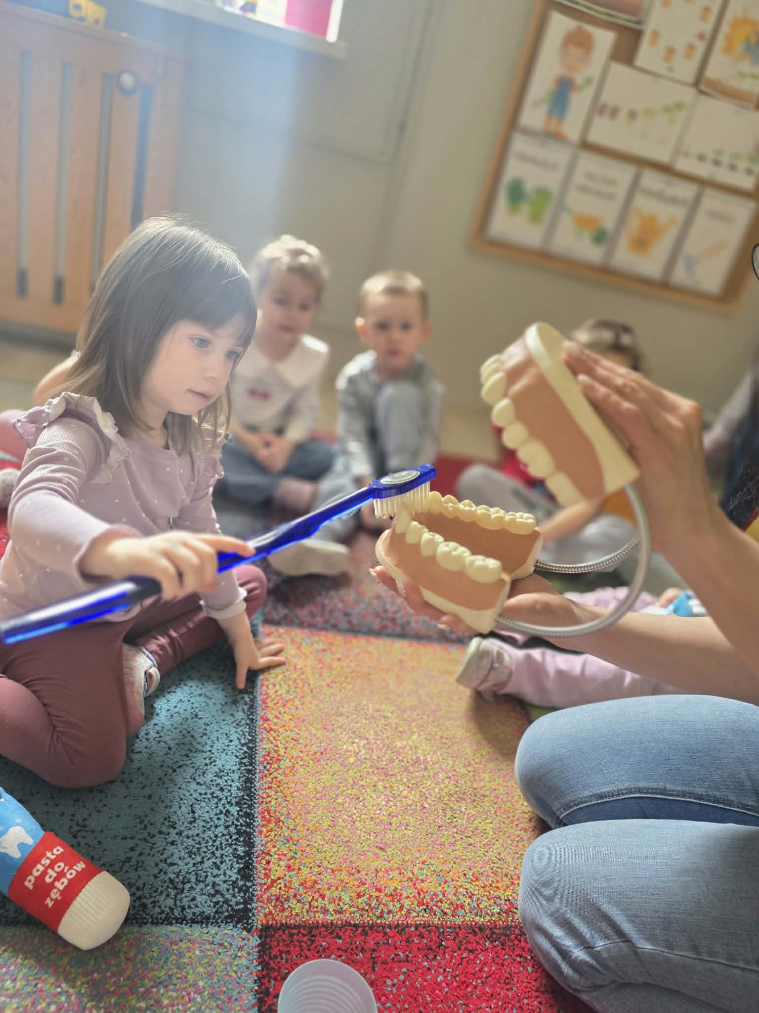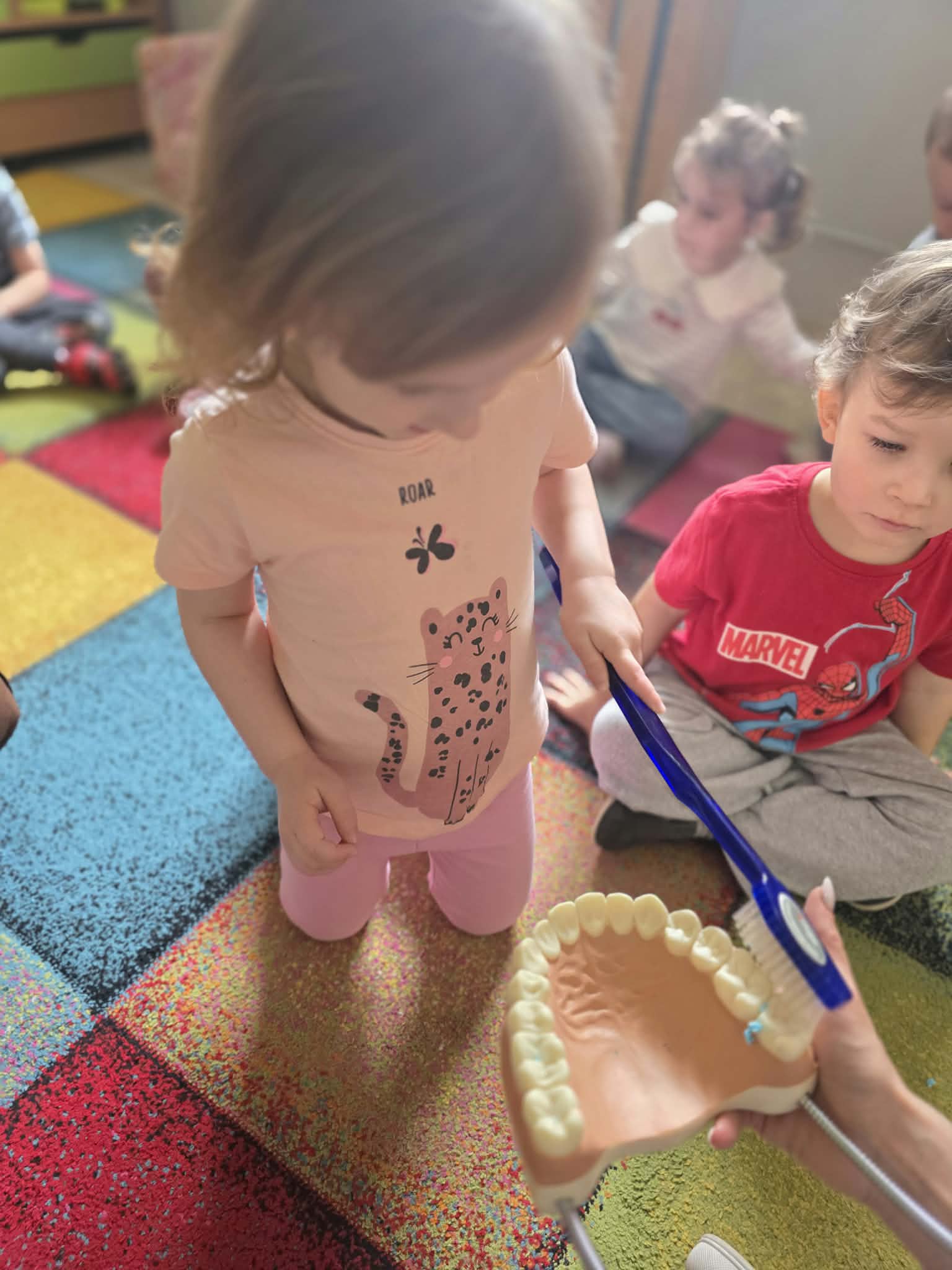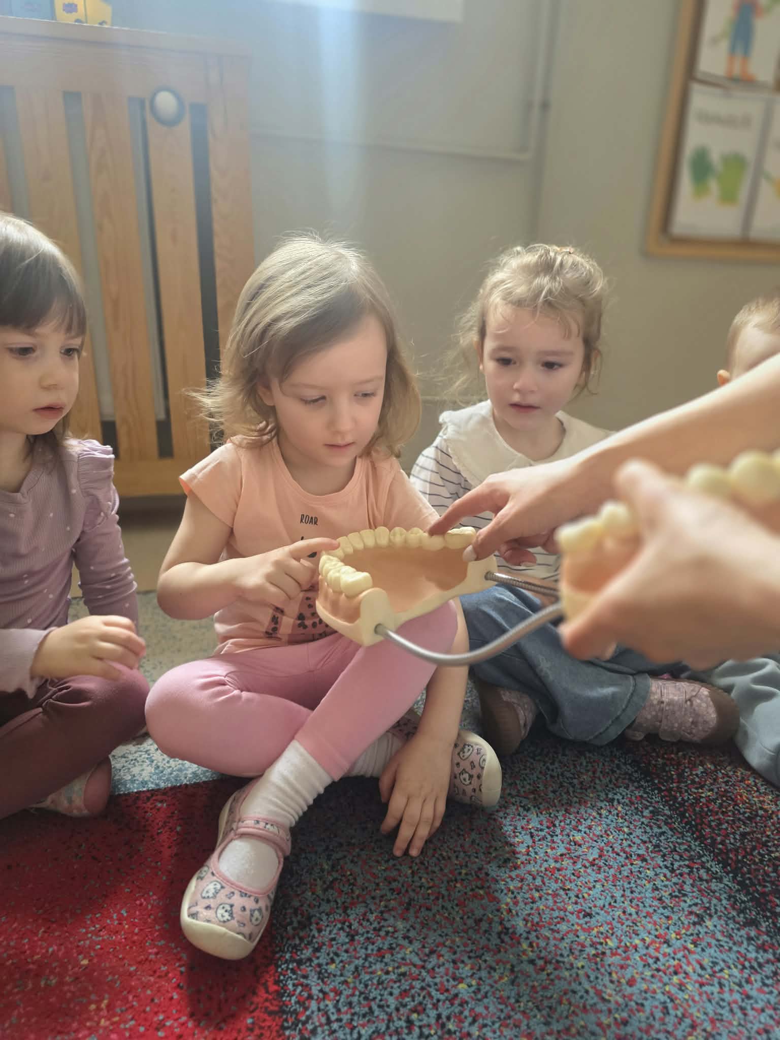 Najwięcej radości sprawiła dzieciom część praktyczna – każde dziecko miało okazję poćwiczyć szczotkowanie zębów na specjalnym modelu szczęki. Dzięki temu przedszkolaki mogły w atrakcyjny i przystępny sposób utrwalić prawidłowe nawyki higieniczne.