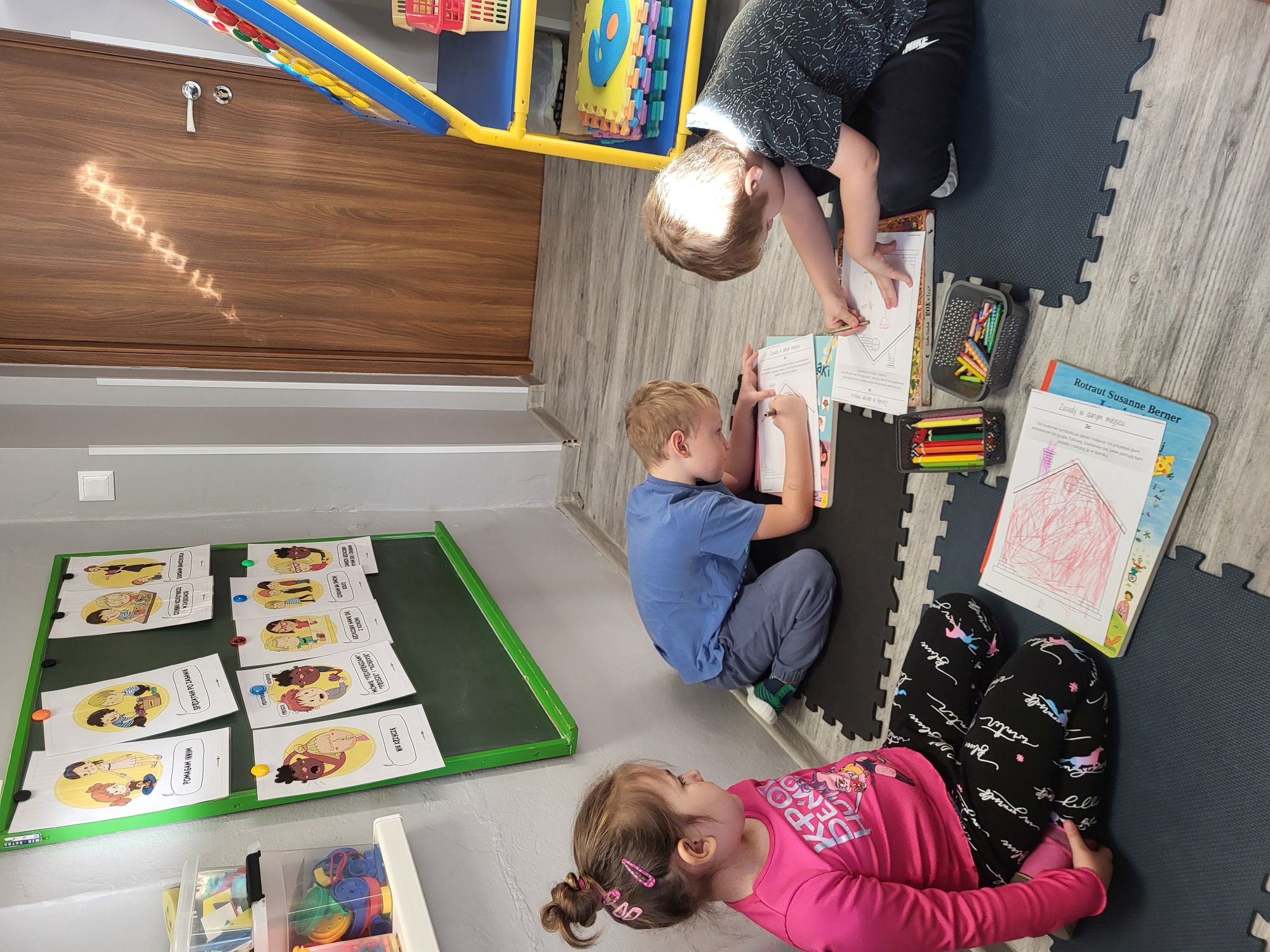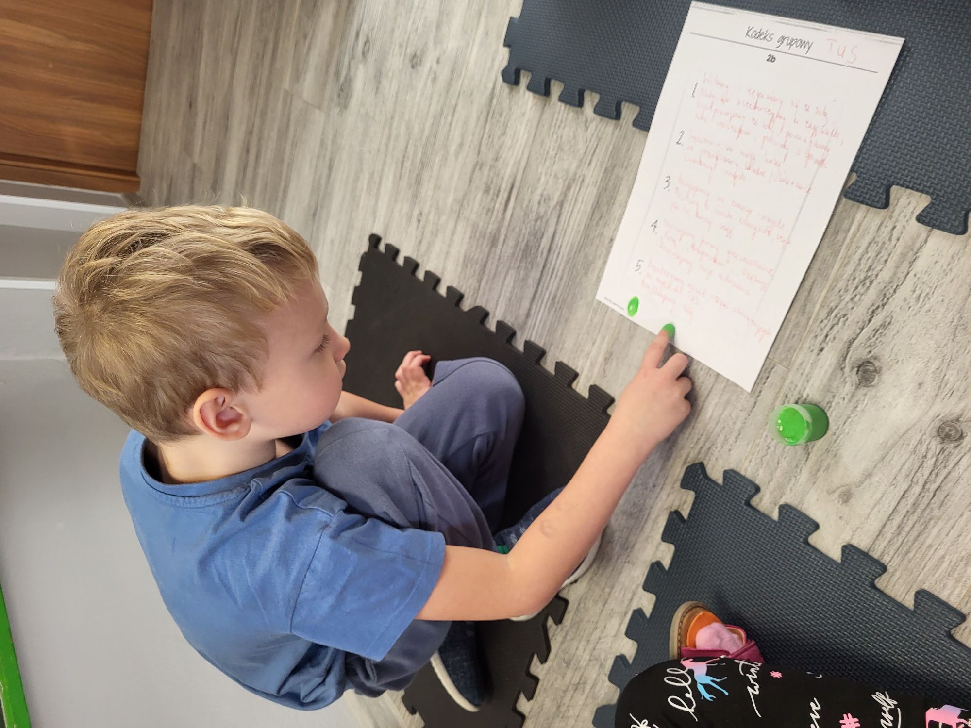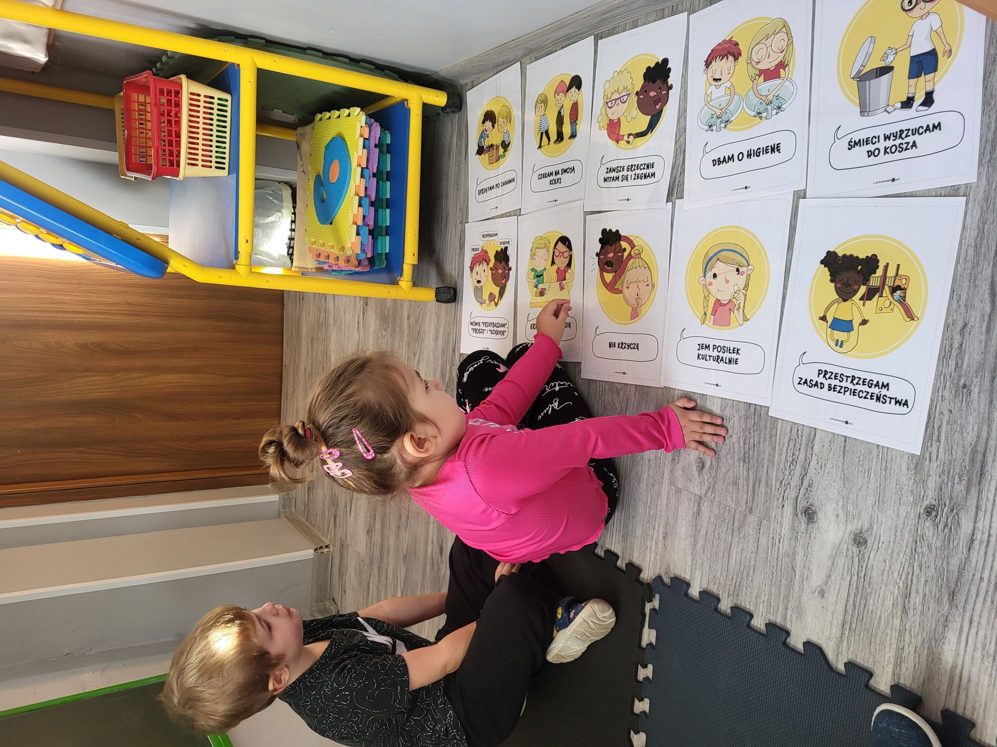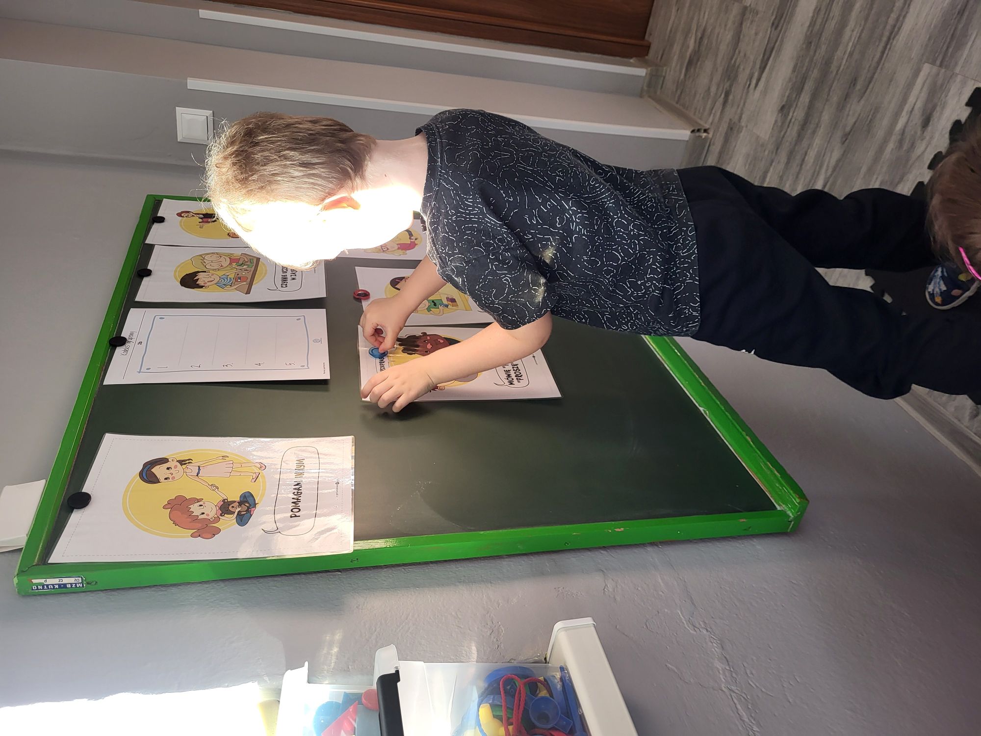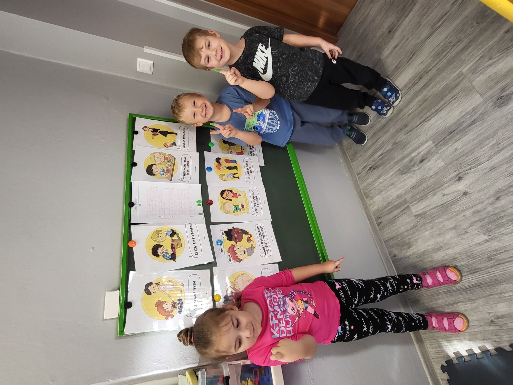 Celem dzisiejszych zajęć było ustalenie kontraktu grupowego TUS. Na podstawie obrazków określały zasady współpracy między sobą, ukierunkowane na rozwijanie kompetencji społecznych, komunikacyjnych, emocjonalnych z uwzględnieniem umiejętności poznawczych.