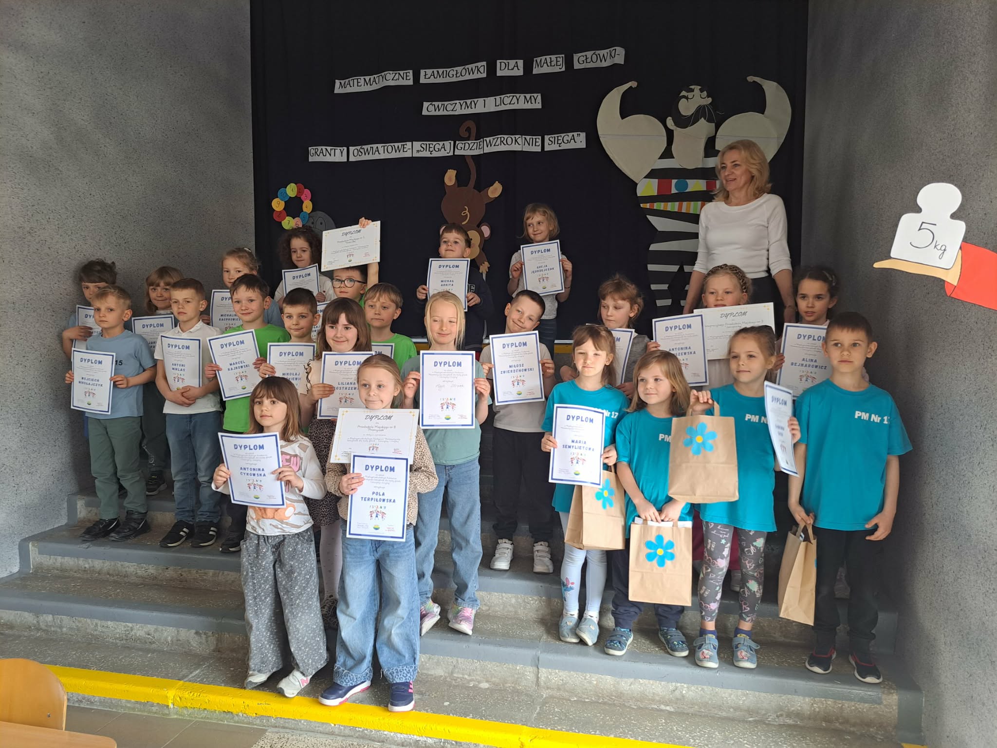 Dziś czteroosobowy zespół dzieci reprezentujący naszą grupę i przedszkole wziął udział w konkursie matematycznym „Matematyczne łamigłówki dla małej główki – ćwiczymy i liczymy”, organizowanym przez Przedszkole Miejskie nr 17 „Niezapominajka” w Kutnie w ramach Kutnowskich Grantów Oświatowych „Sięgaj, gdzie wzrok nie sięga”. Przedszkolaki z ogromnym zaangażowaniem rozwiązywały przygotowane zadania, rozwijając swoje umiejętności logicznego myślenia, liczenia oraz współpracy w zespole. Udział w konkursie był dla dzieci nie tylko okazją do sprawdzenia swoich możliwości, ale także wspaniałą przygodą i cennym doświadczeniem. Jesteśmy bardzo dumni z naszych reprezentantów za ich wysiłek, odwagę i piękne reprezentowanie przedszkola.