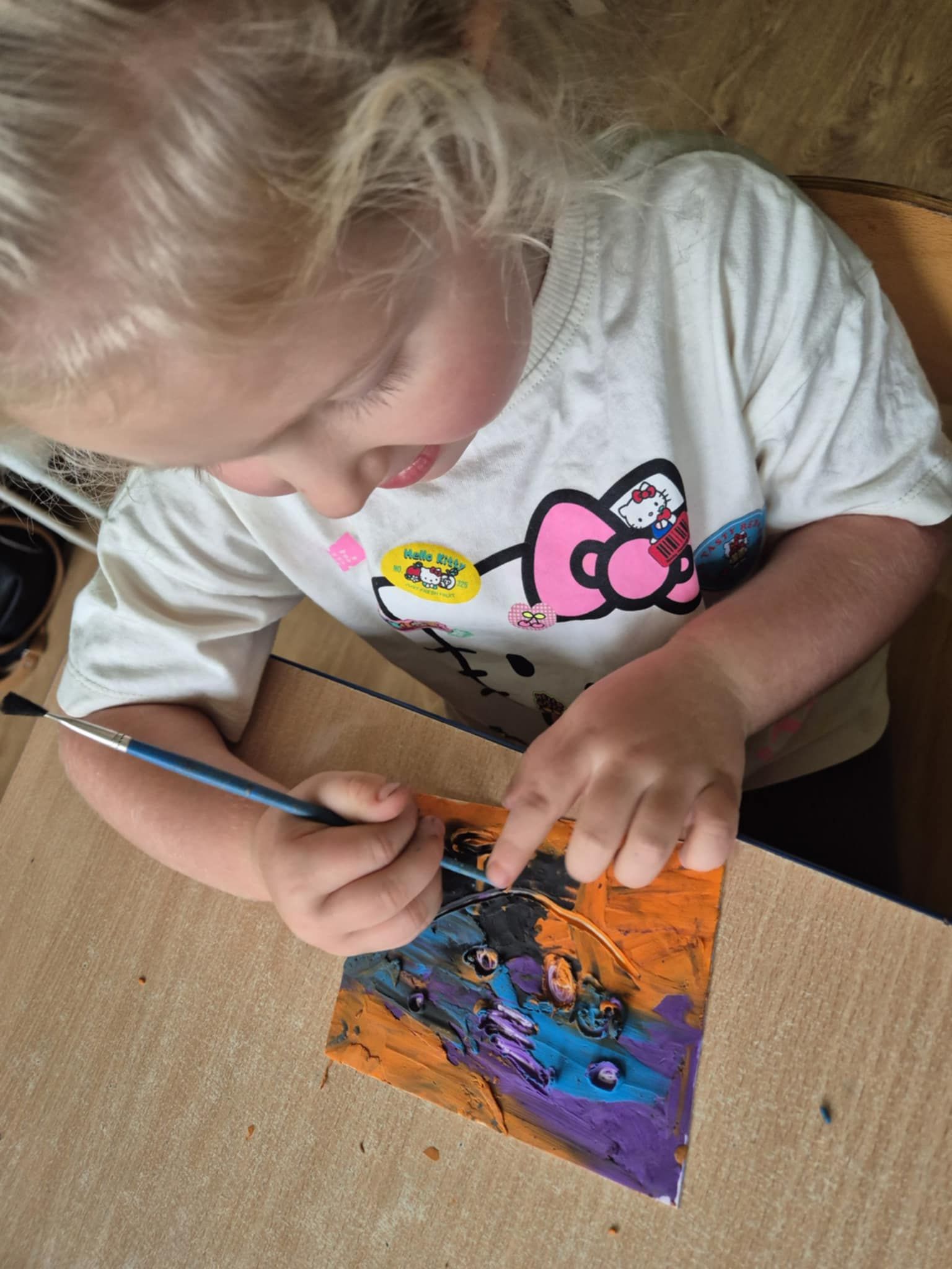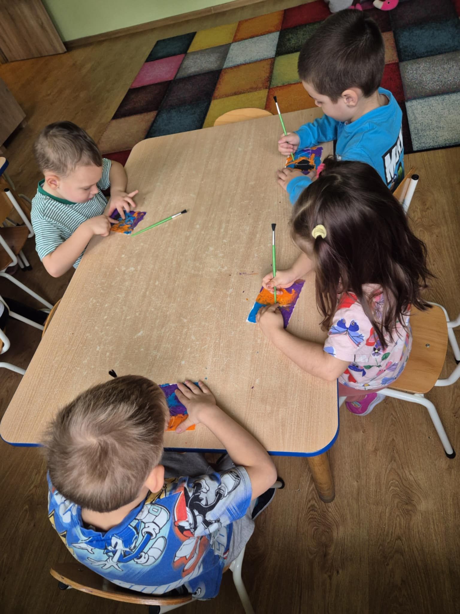 W ramach projektu edukacyjnego "Mali twórcy", którego celem jest kształtowanie i rozwijanie umiejętności twórczych oraz uzdolnień plastycznych dzieci poprzez różnorodne działania artystyczne, "Sarenki" wykonały dziś obrazek metodą wydrapywania w plastelinie.