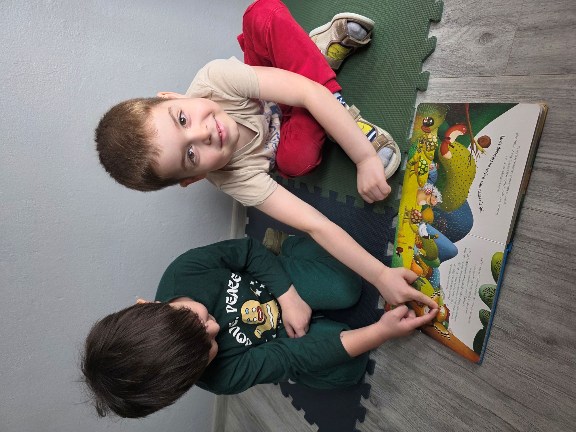 Na dzisiejszych zajęciach, chłopcy słuchali bajki terapeutycznej czytanej przez nauczyciela pt. "Pożegnaj złość". Wskazywali bohaterów bajki, w miarę możliwości odpowiadali na pytania oraz uczyli się kilku sposobów radzenia sobie z gniewem.