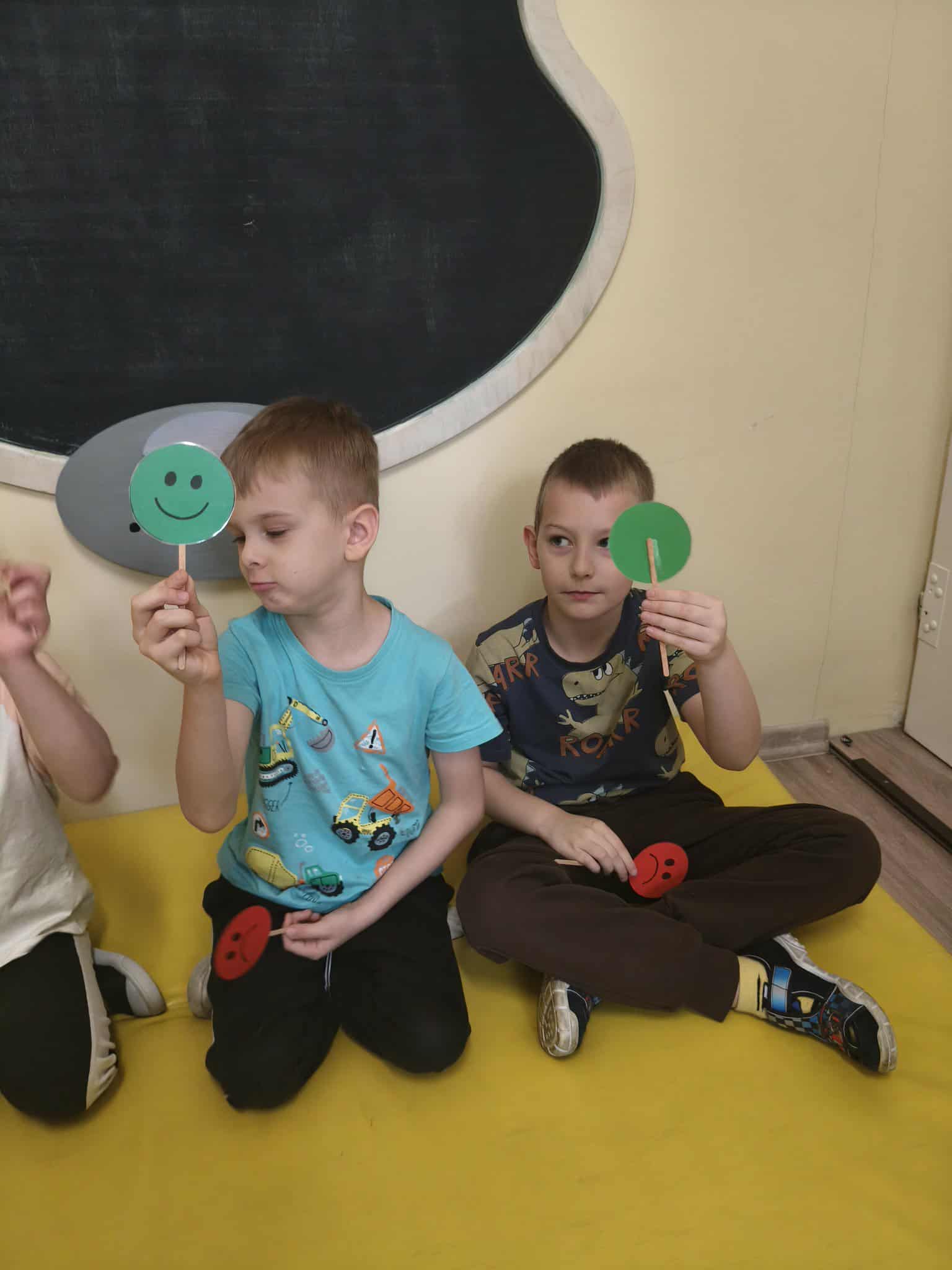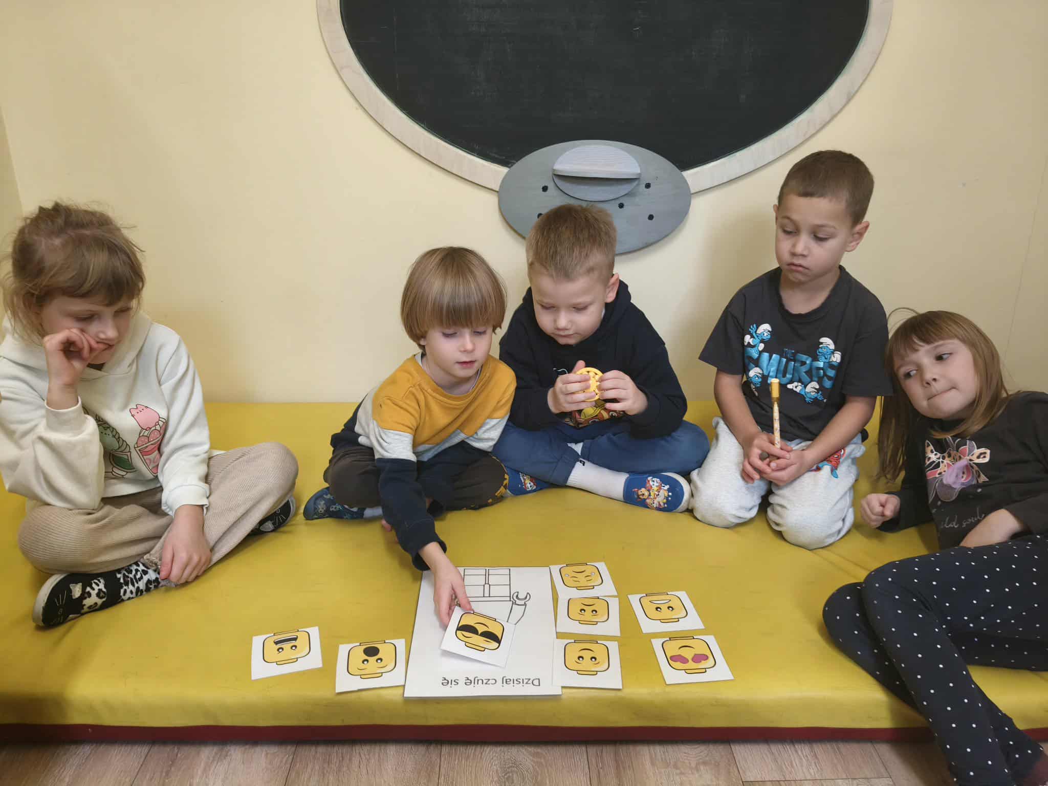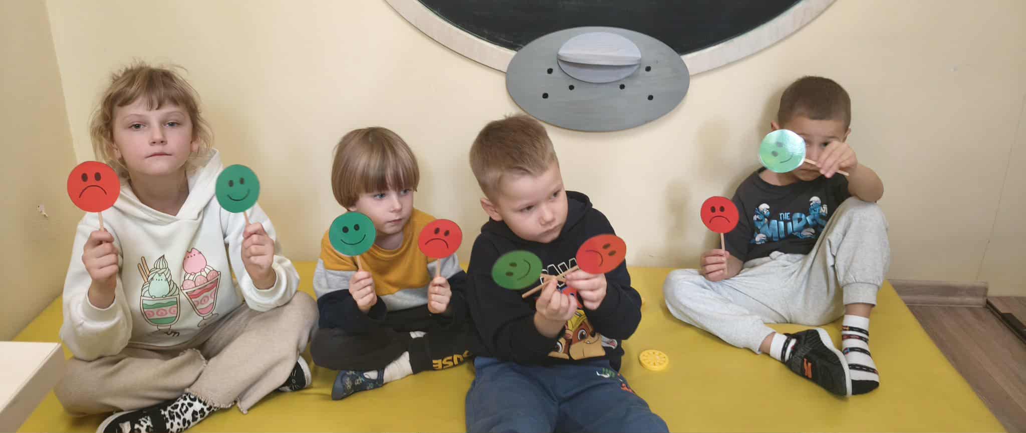 Dzisiaj podczas zajęć dzieci kształtowały umiejętność nazywania różnych stanów emocjonalnych. Dzieci wyszukiwały spośród różnych obrazków, tych z podaną emocją. Następnie opisywały sytuację, w której możemy daną emocję odczuwać. Wysłuchały bajki o dwóch małpkach, na posdtawie której wspólnie stwierdziły że każda emocja jest ważna. Przy pomocy lizaków z buźkami przyporządkowały odczuwane emocje w podanych przez nauczyciela sytuacjach.