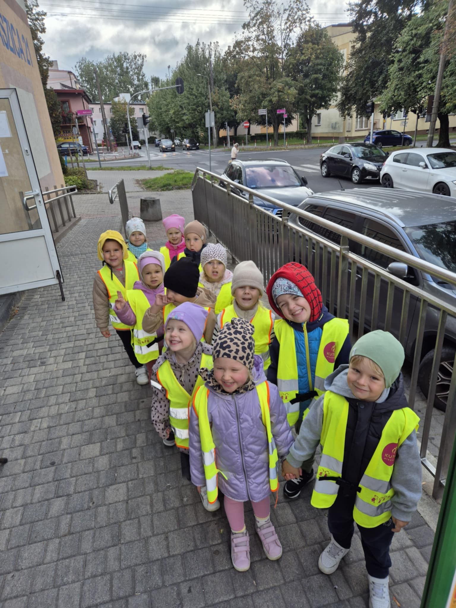 W bieżącym tygodniu uczymy się o zasadach poruszania się na drodze. Dziś wybraliśmy się na spacer, na którym szczególną uwagę zwróciliśmy na bezpieczne przejście przez jezdnię.