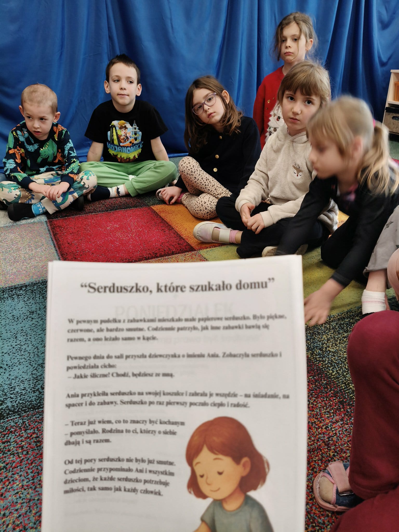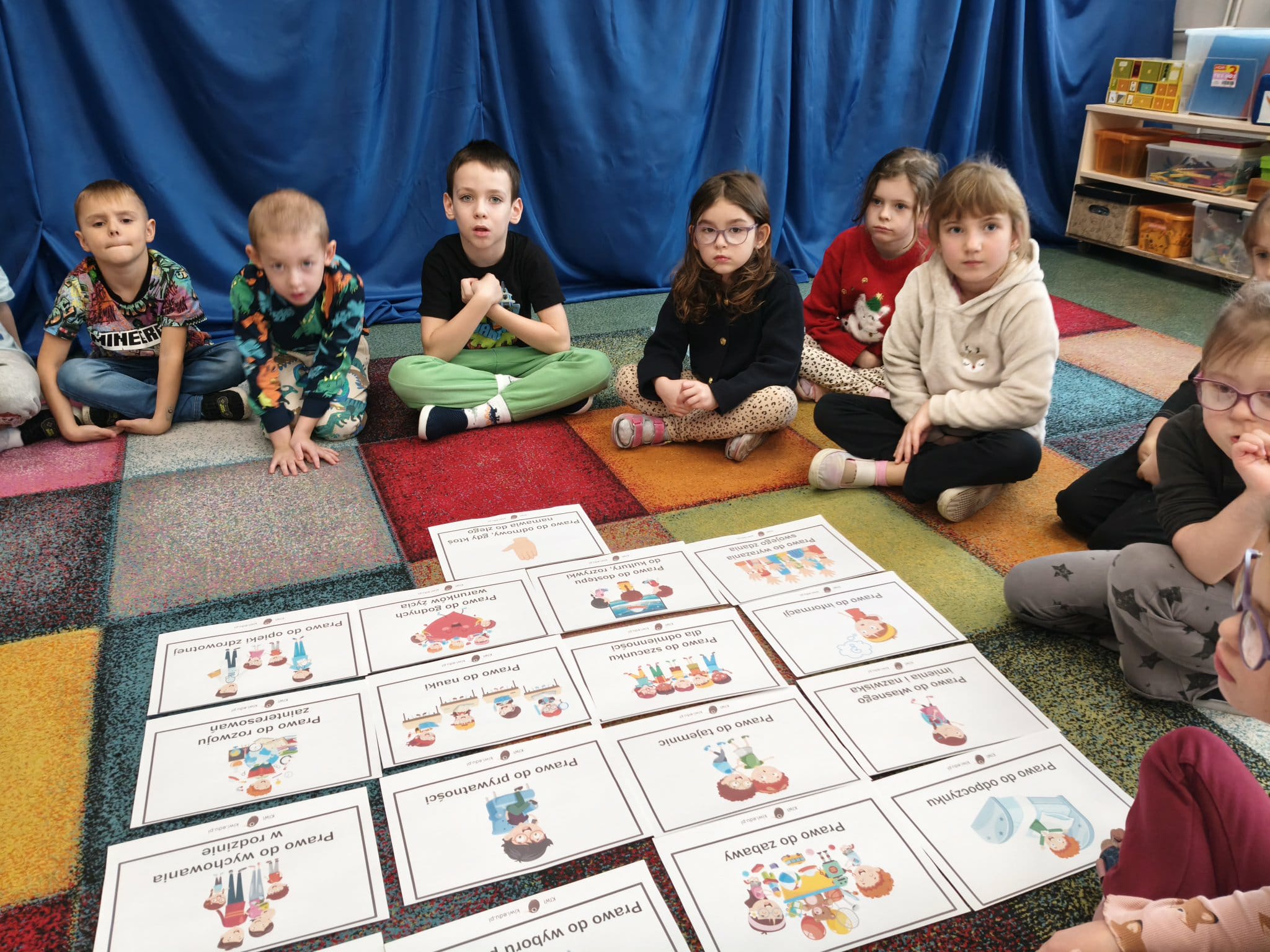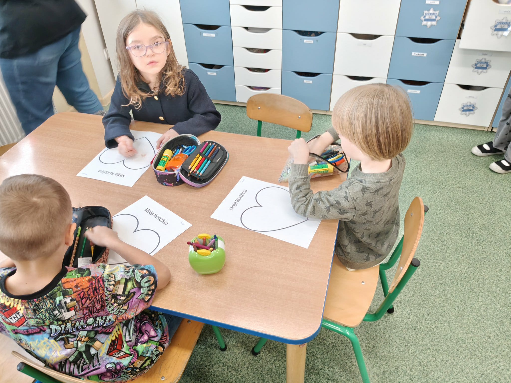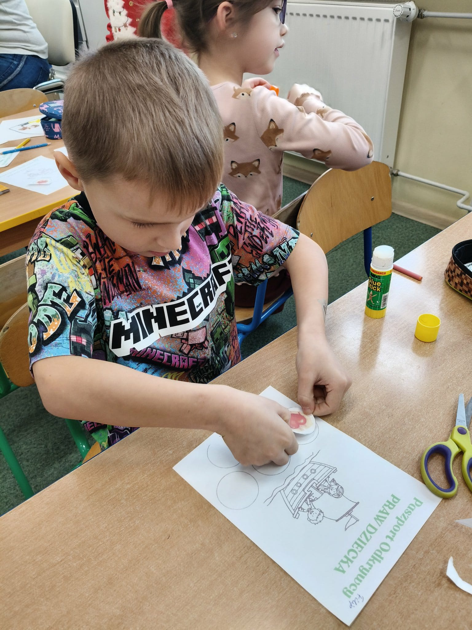 Dzisiaj podczas zajęć dzieci poznały prawa jakie im przysługują oraz swoje obowiązki. Wysłuchały treści listu od ambasadorki projektu. Poznały przygodę serdusza z opowiadania pt.:"Serduszko, które szukało domu". Następnie wykonały pracę plastyczną "Moja rodzina". Na koniec zajęć wkleiły odznakę do Paszportu Odkrywcy Praw Dziecka.