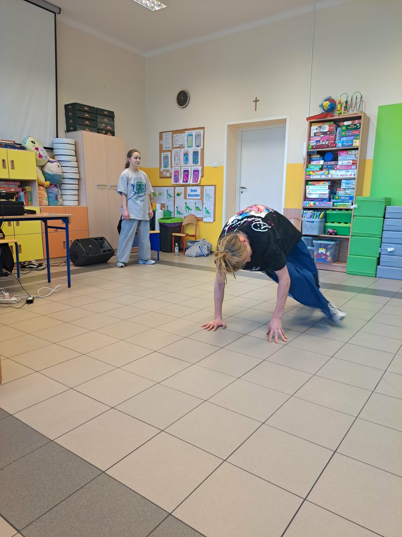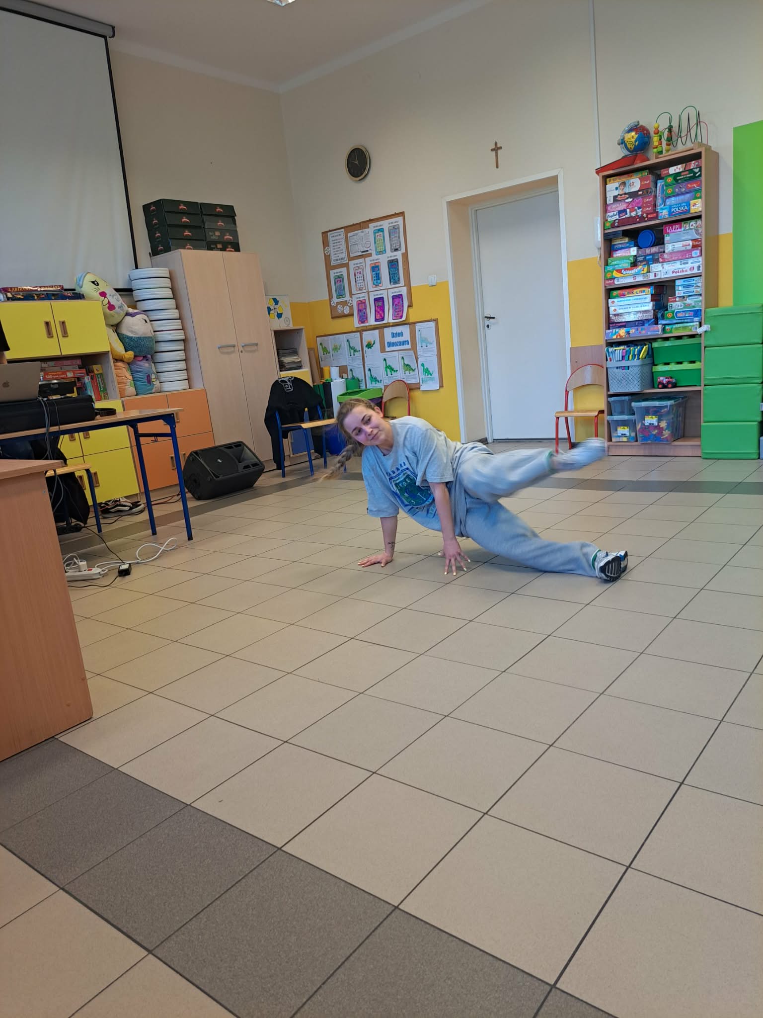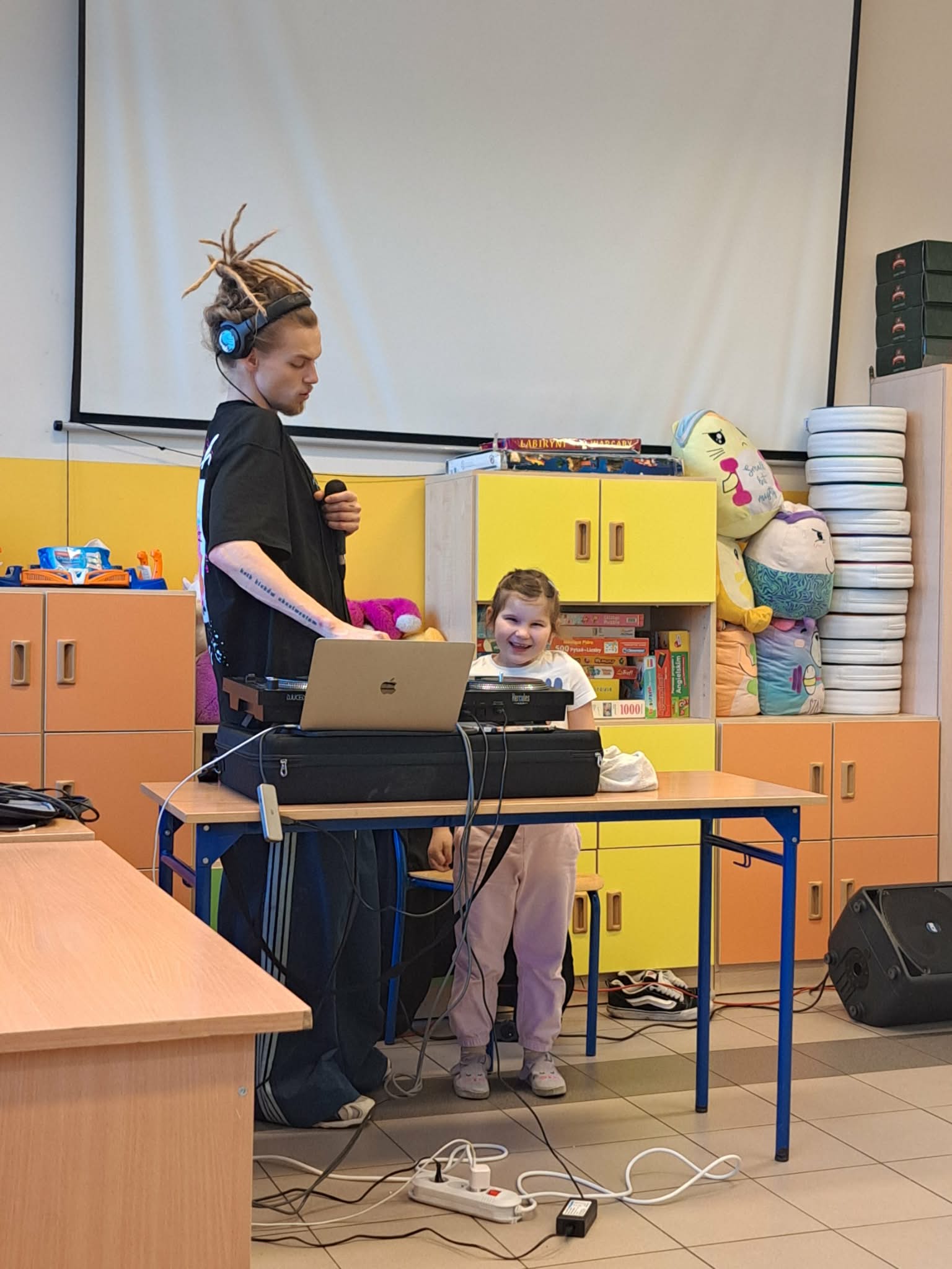 W czwartek Wiewióreczki uczestniczyły w koncercie muzycznym o tematyce hip-hopu, który dostarczył im wielu radości i nowych wrażeń. Podczas spotkania DJ zaprezentował dzieciom muzykę rapową, opowiadając o rytmie, dźwiękach i sposobie jej tworzenia. Dużą atrakcją był także pokaz tańca breakdance w wykonaniu tancerki, która zaprezentowała dynamiczne ruchy i efektowne figury. Dzieci z zainteresowaniem oglądały występ, reagowały na rytm muzyki oraz miały okazję poczuć energię i radość płynącą z tańca.