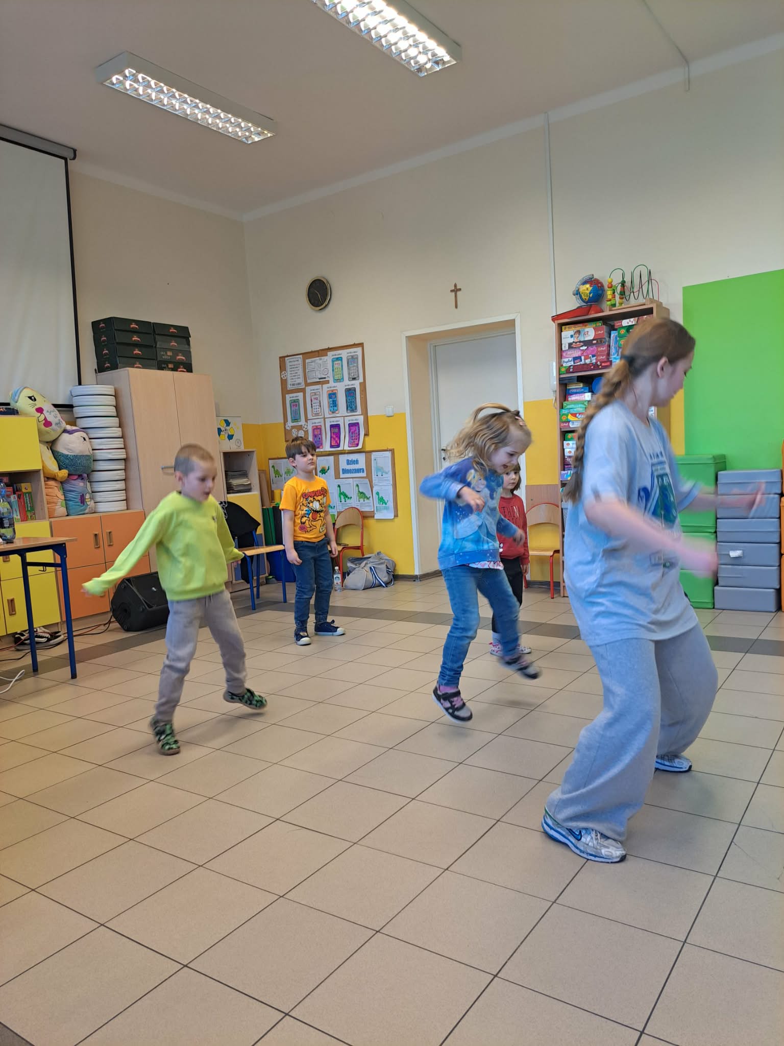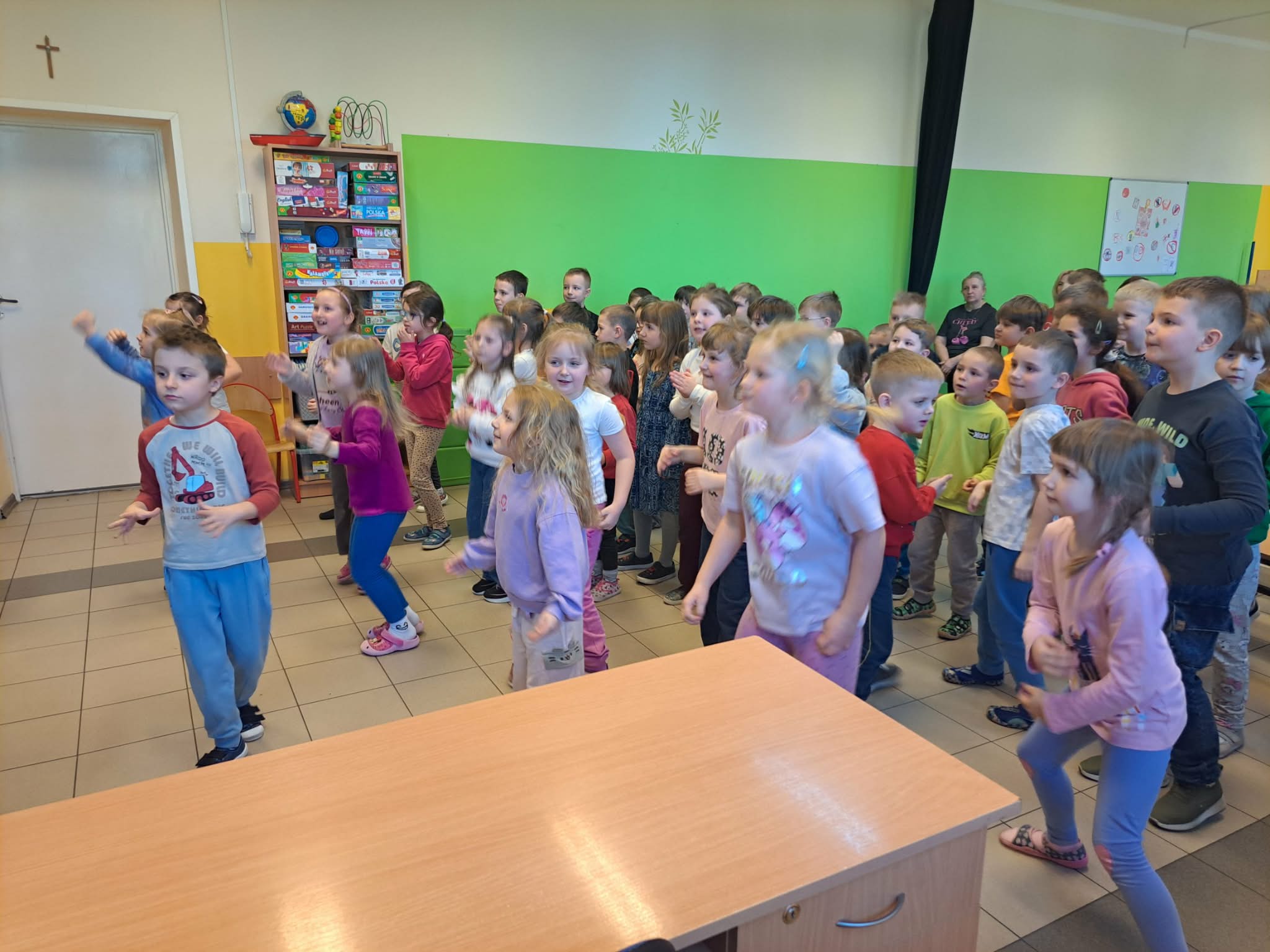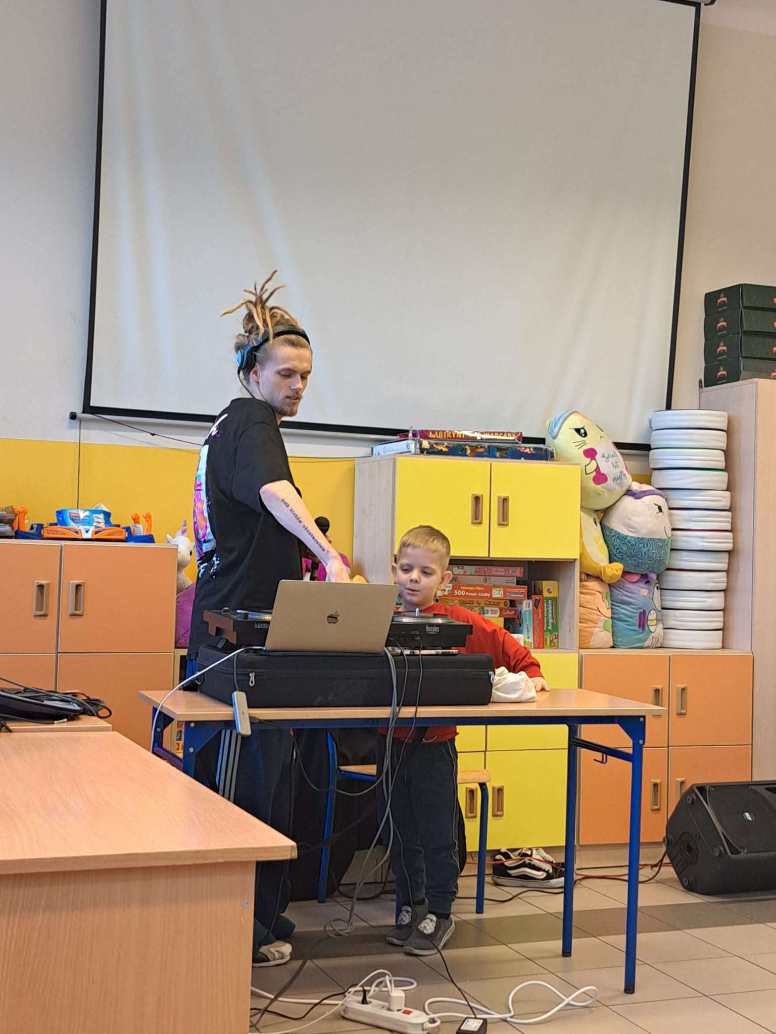 W czwartek Wiewióreczki uczestniczyły w koncercie muzycznym o tematyce hip-hopu, który dostarczył im wielu radości i nowych wrażeń. Podczas spotkania DJ zaprezentował dzieciom muzykę rapową, opowiadając o rytmie, dźwiękach i sposobie jej tworzenia. Dużą atrakcją był także pokaz tańca breakdance w wykonaniu tancerki, która zaprezentowała dynamiczne ruchy i efektowne figury. Dzieci z zainteresowaniem oglądały występ, reagowały na rytm muzyki oraz miały okazję poczuć energię i radość płynącą z tańca.