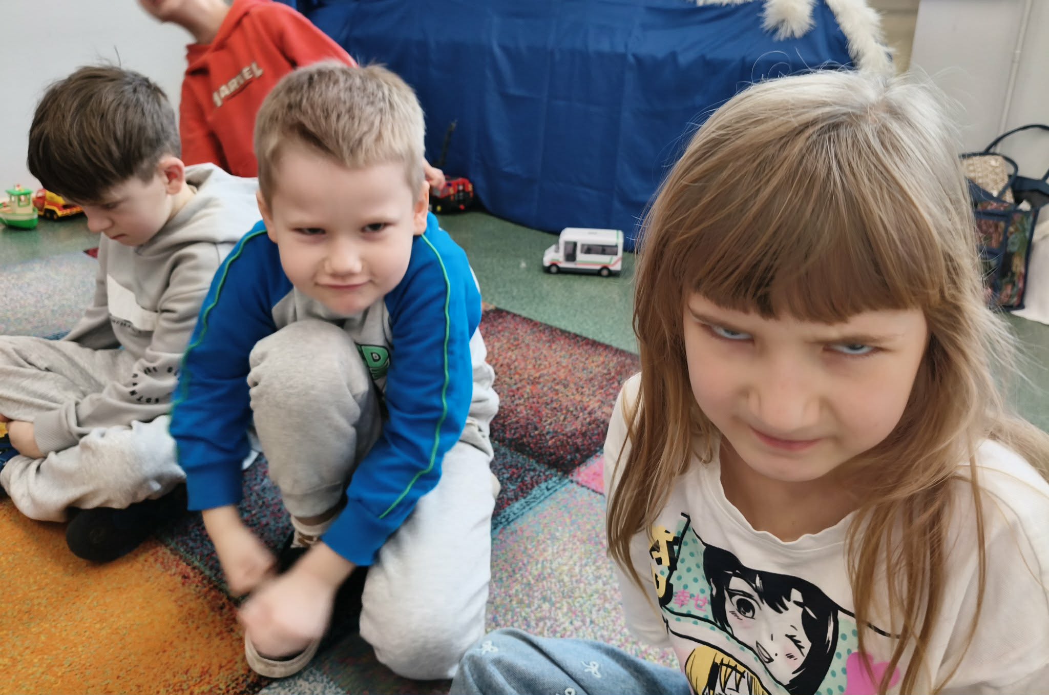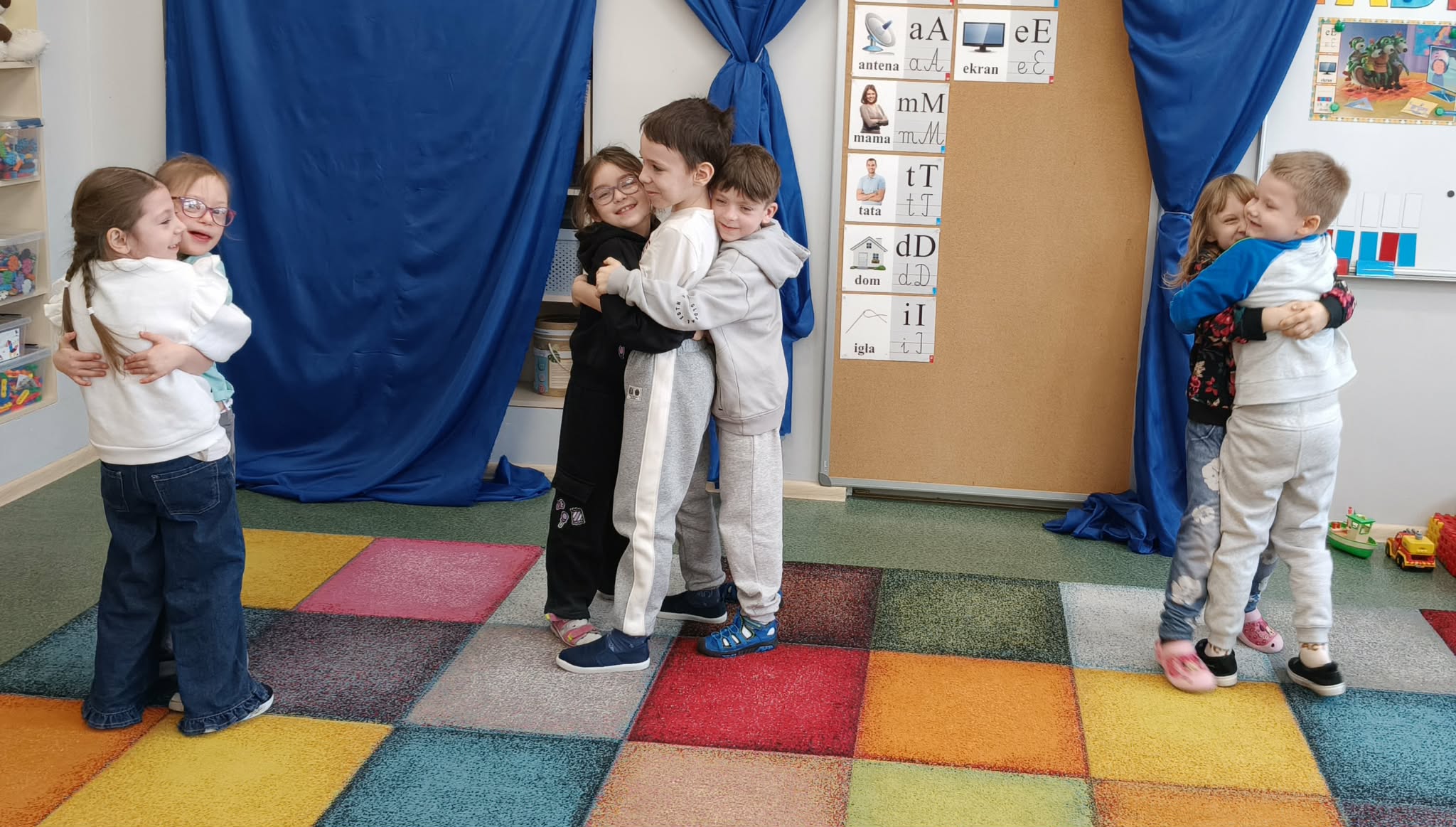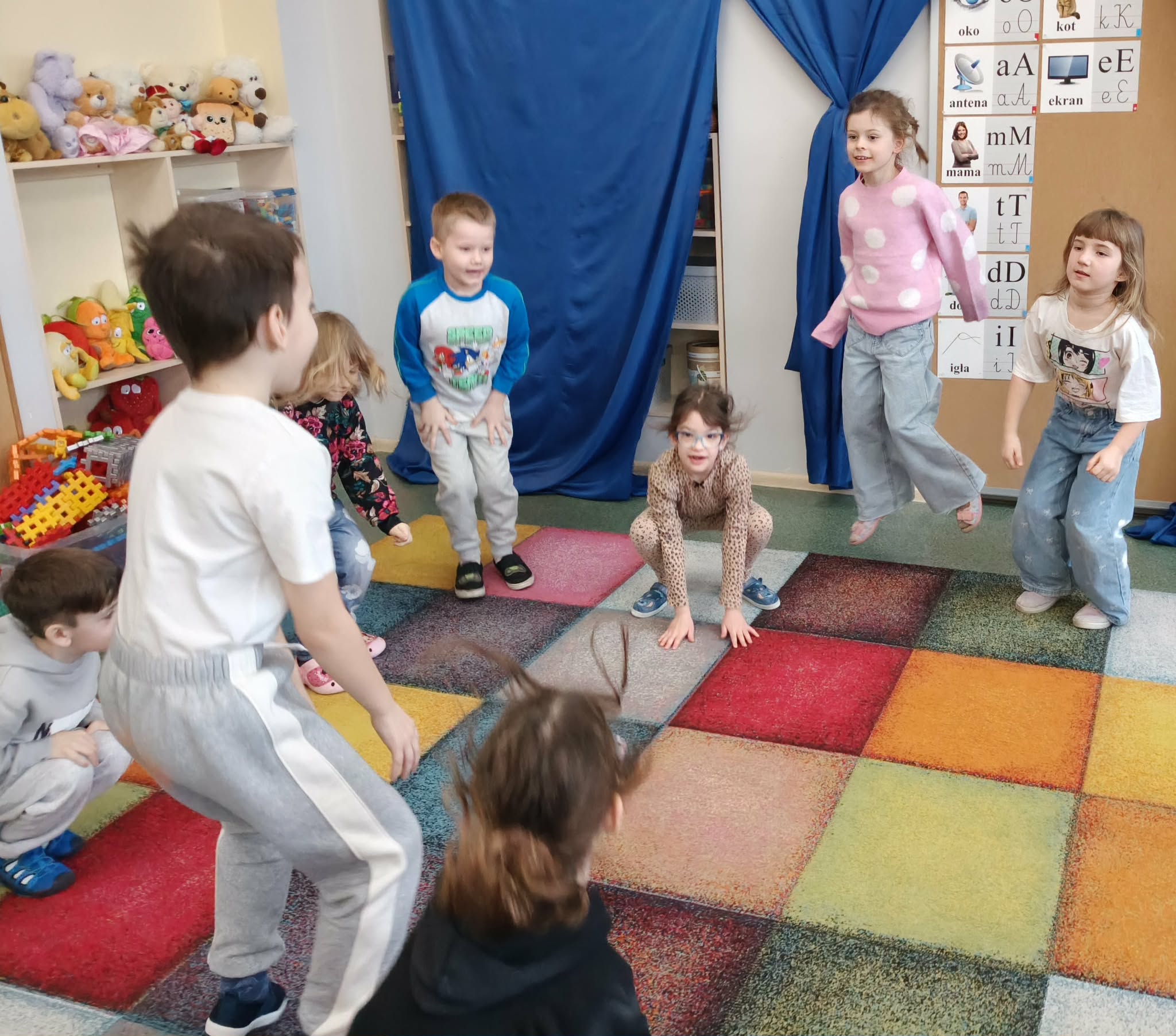 W dniu dzisiejszym zrealizowaliśmy ostatnie zadanie z cylku - Tydzień Praw Dziecka w przedszkolu. Podczas tych zajęć dzieci wyrażały swoje emocje poprzez ruch, muzykę i relaksację.