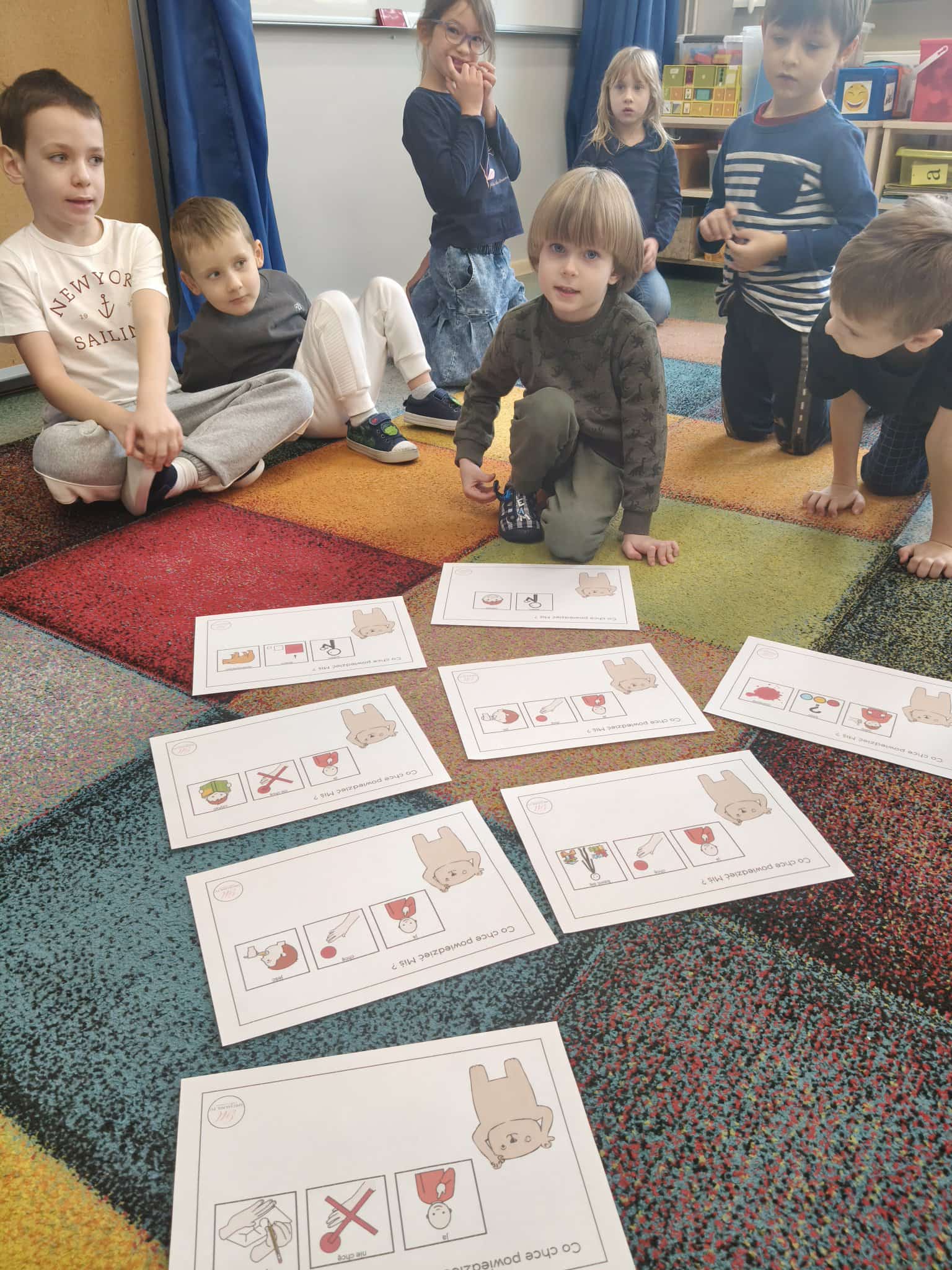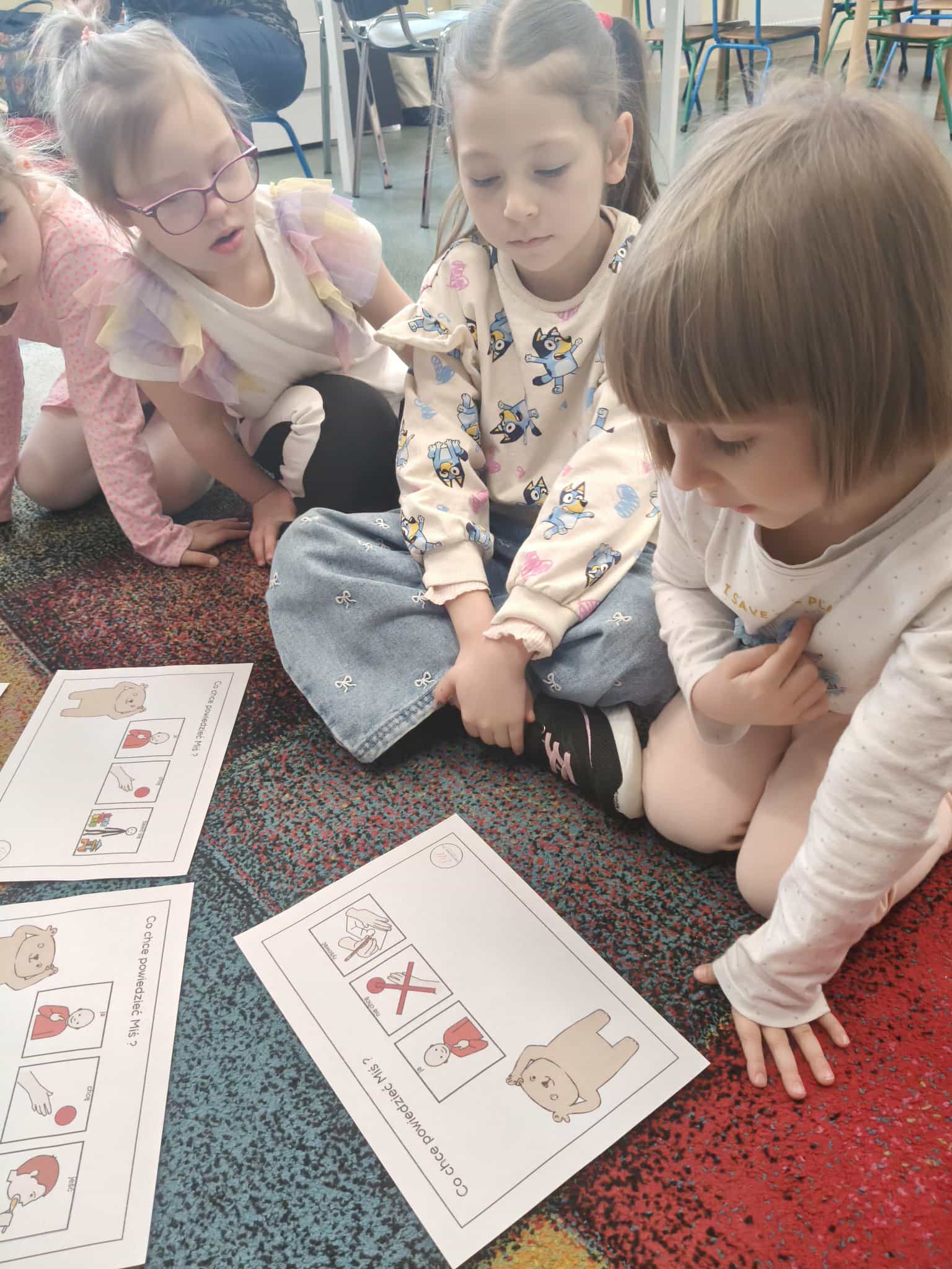 Dzisiaj zrealizowaliśmy kolejne zadanie z projektu "Równi w Różnorodności", dotyczące komunikacji alternatywnej. Dzieci poznały czym jest komunikacja oraz jakie są jej rodzaje. Dowiedziały się na czym polega komunikacja alternatywna. Podejmowały pórby odczytywania piktogramów pojedynczych wyrazów oraz prostych zdań.