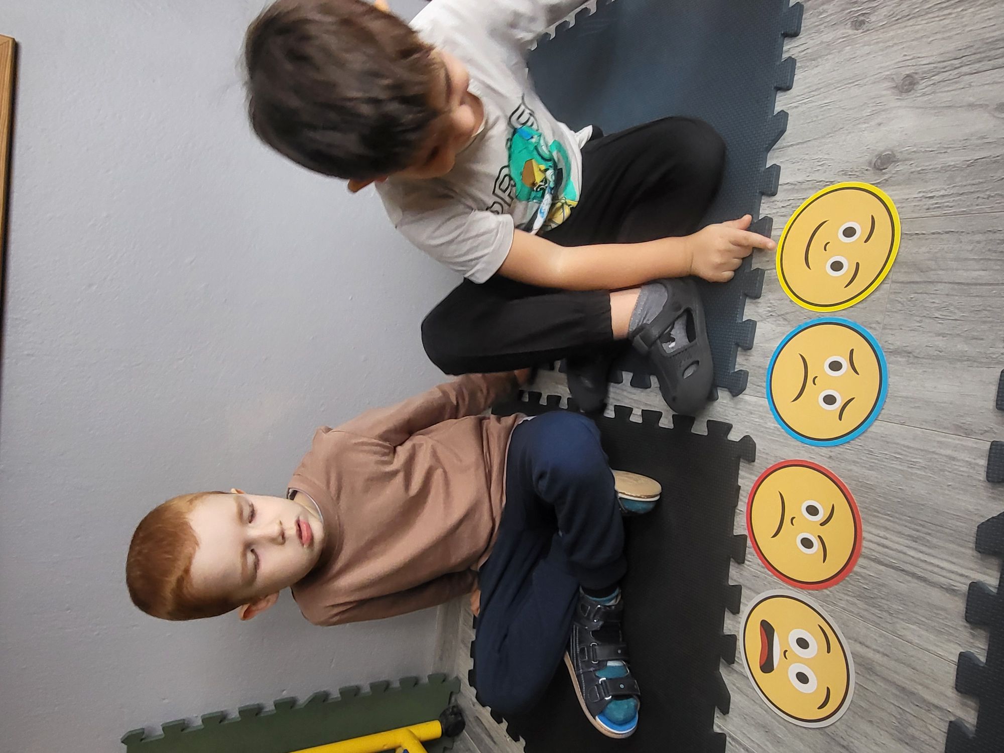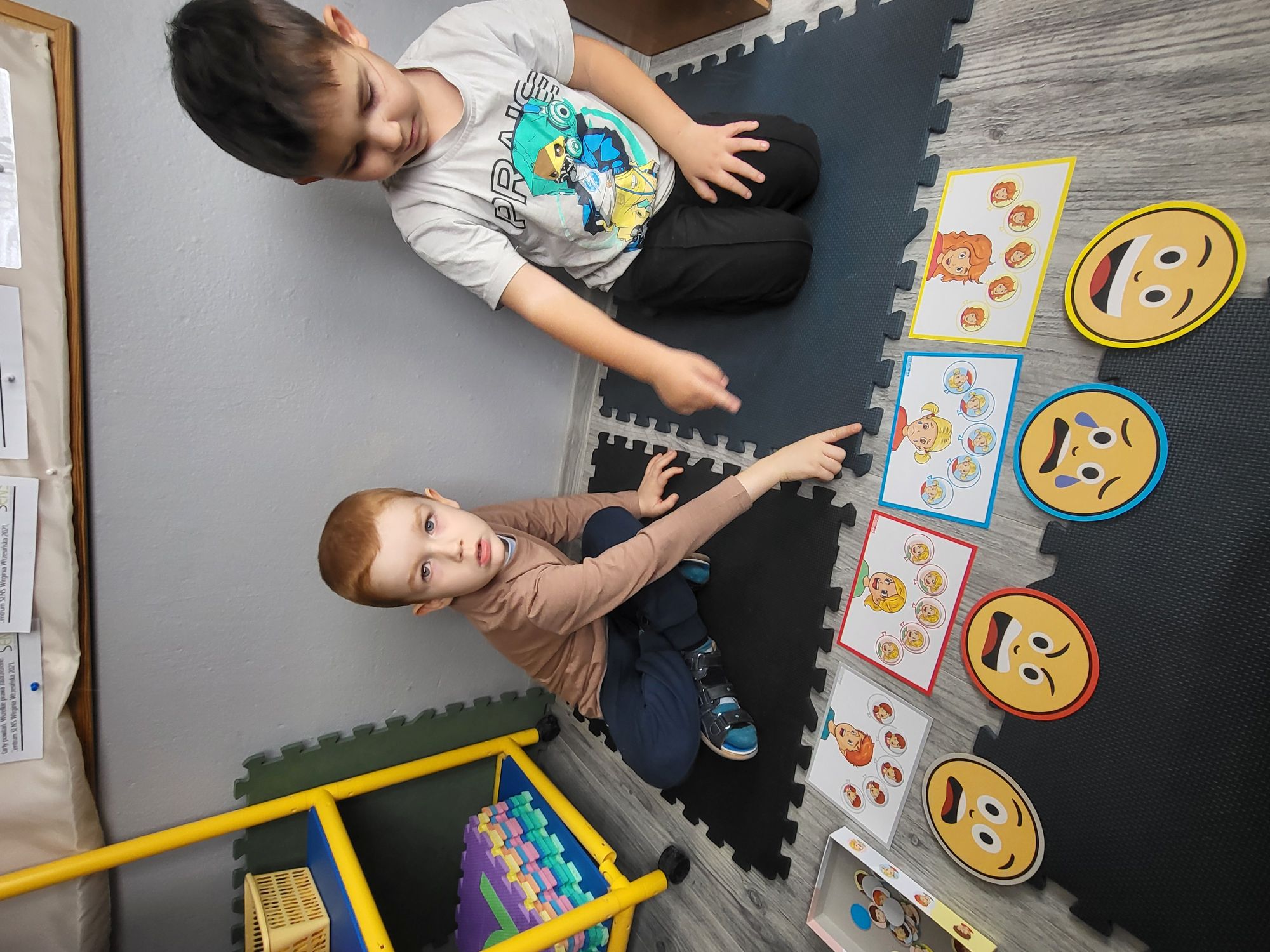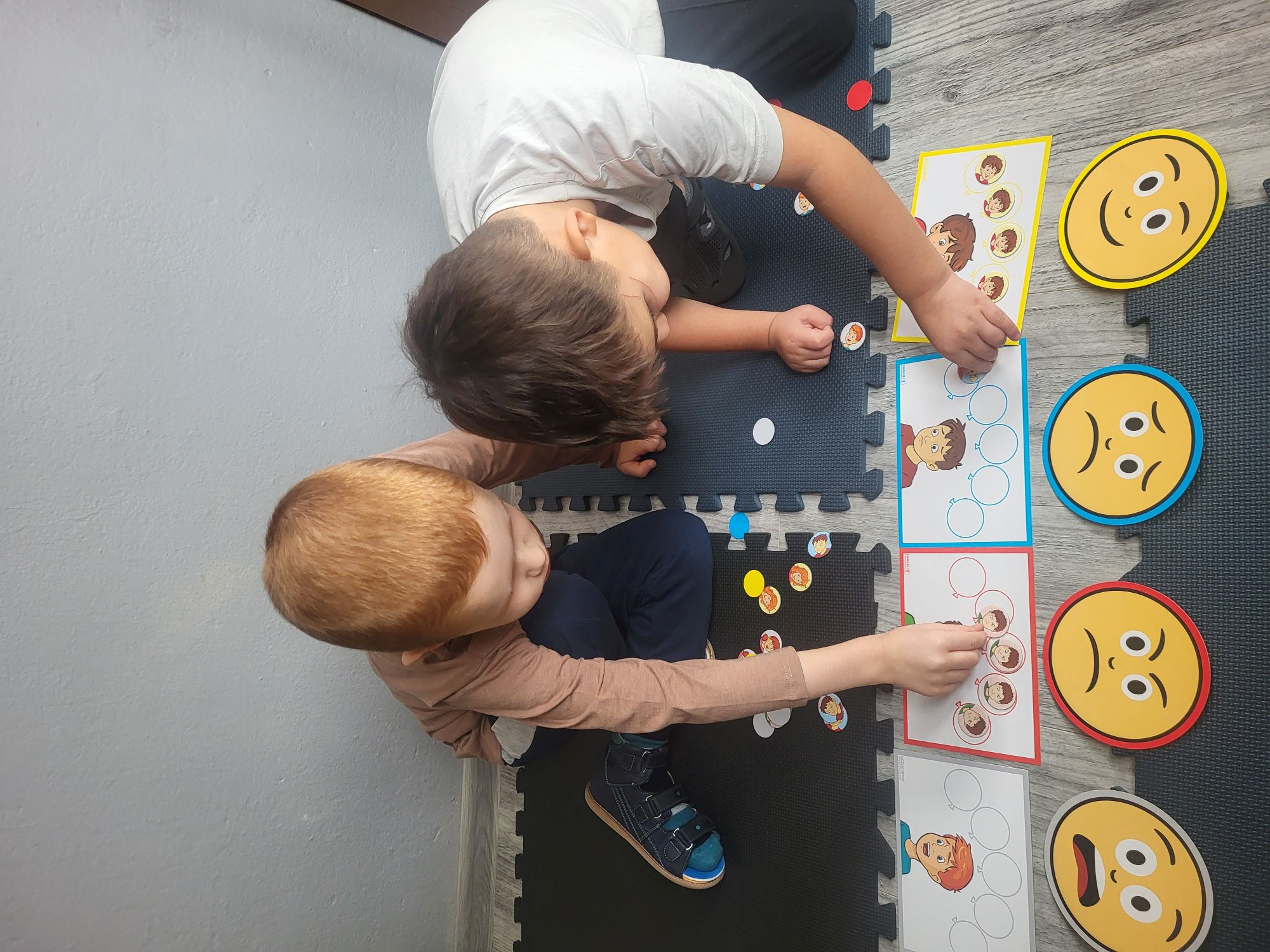 Na dzisiejszych zajęciach TUS chłopcy rozwijali umiejętność identyfikowania emocji podczas pracy z obrazkami m.in.: