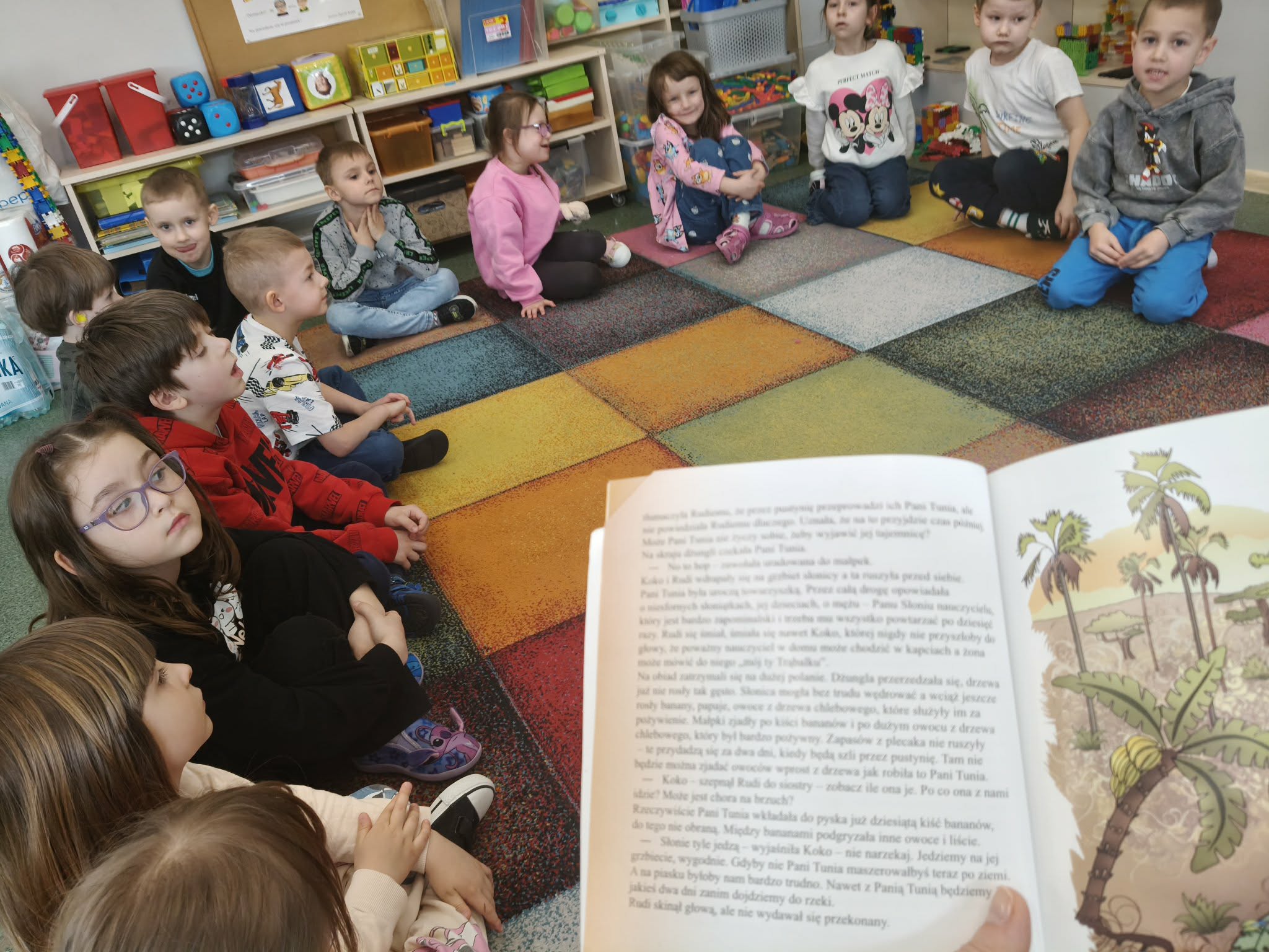 Dzieci wysłuchały kolejnych rozdziałów książki pt.;"O małpce, która spadła z drzewa". Podczas słuchania opowiadania o przygodach dwóch małpek, dzieci stopniowo są wprowadzane w tematykę związaną z epilepsją.