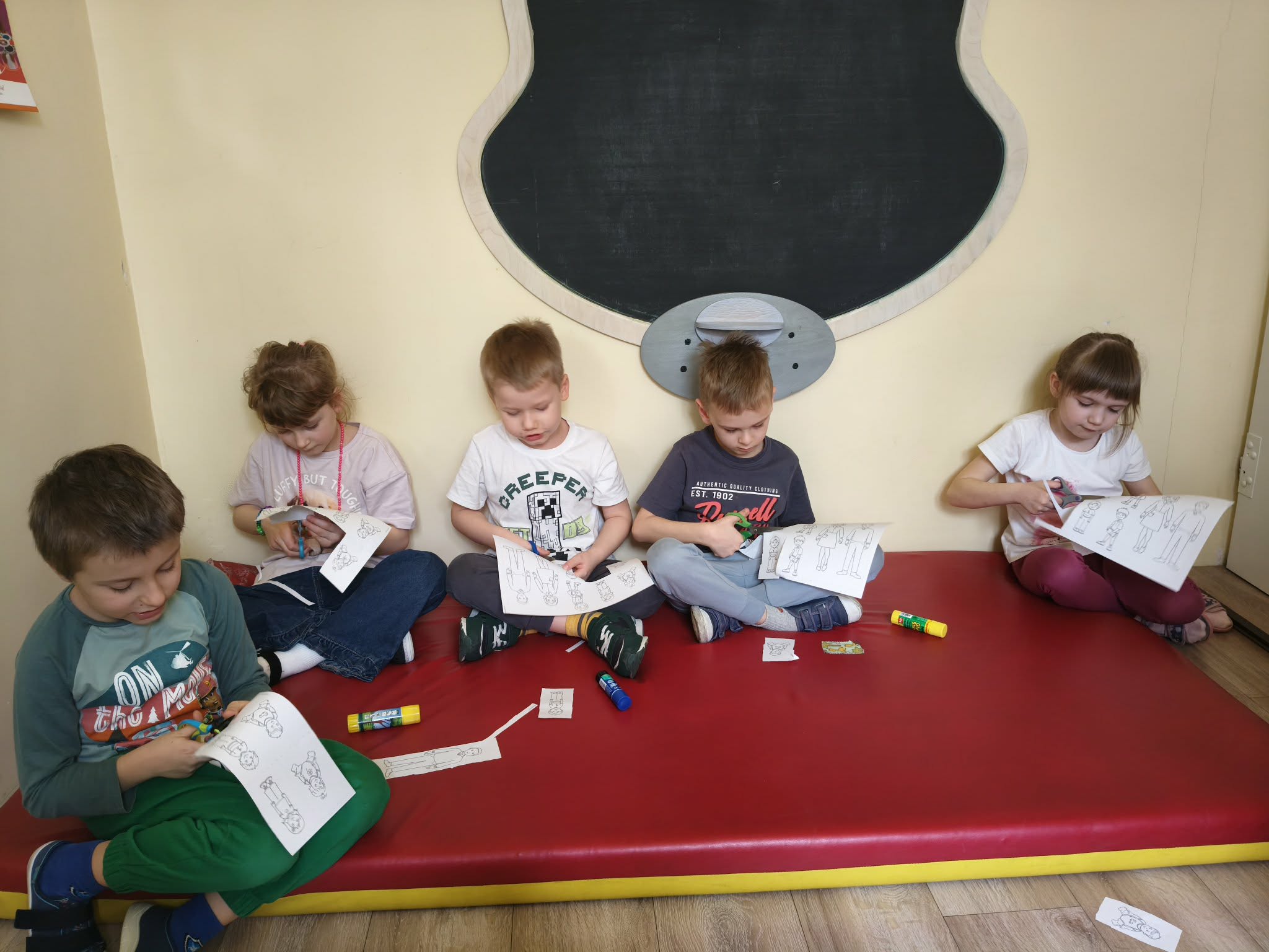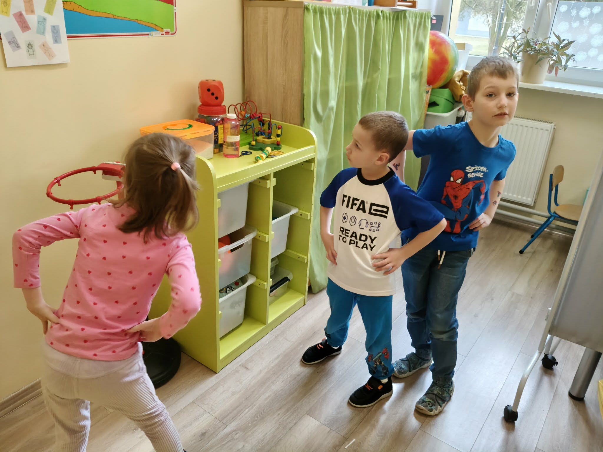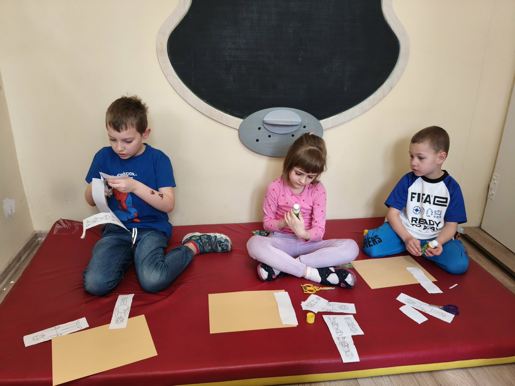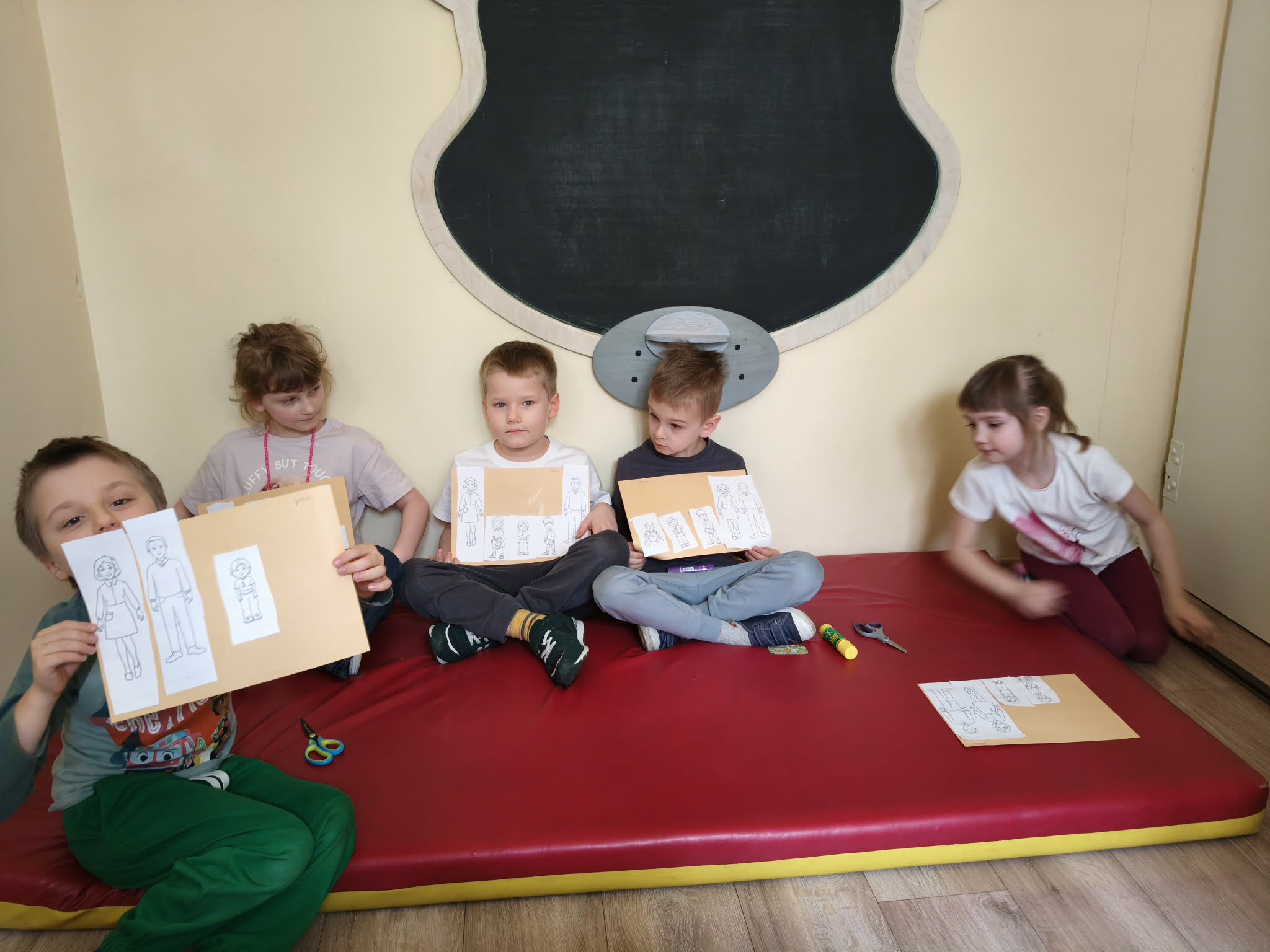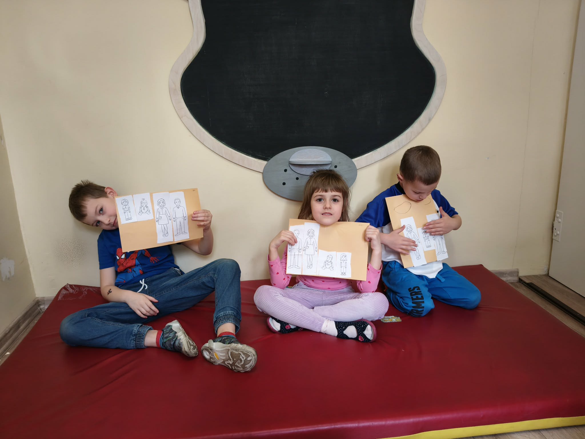 Podczas dzisiejszych zajęć dzieci wymieniały i nazywały członków swojej rodziny (kształtowały tożsamość rodzinną). Wypowiadały się na temat "czym jest rodzina". Wykonały pracę plastyczną. A także uczestniczyły w zabawie ruchowej.