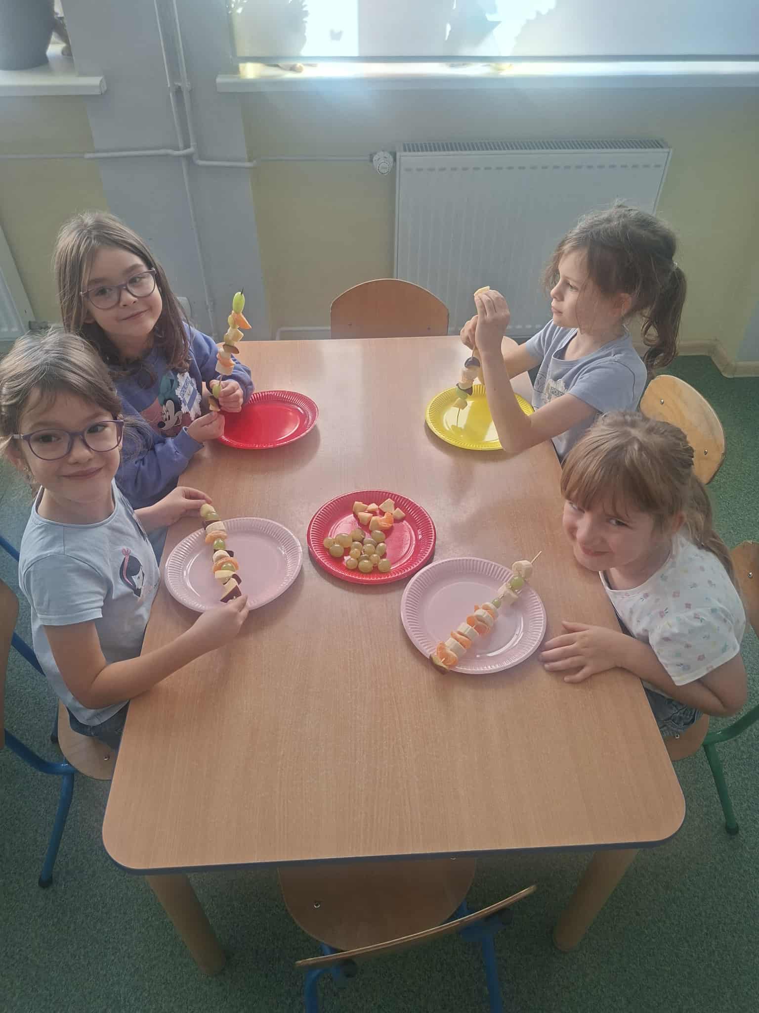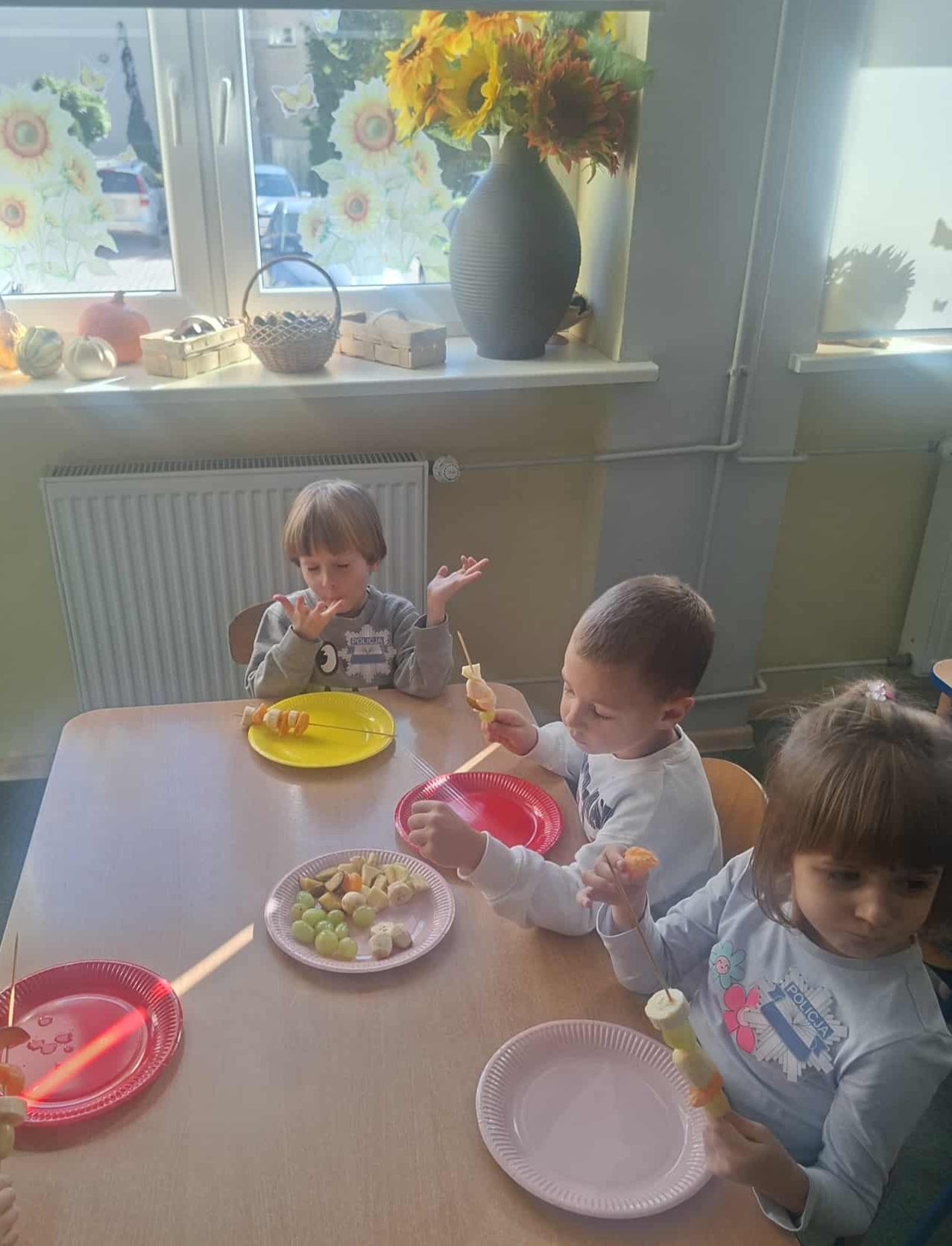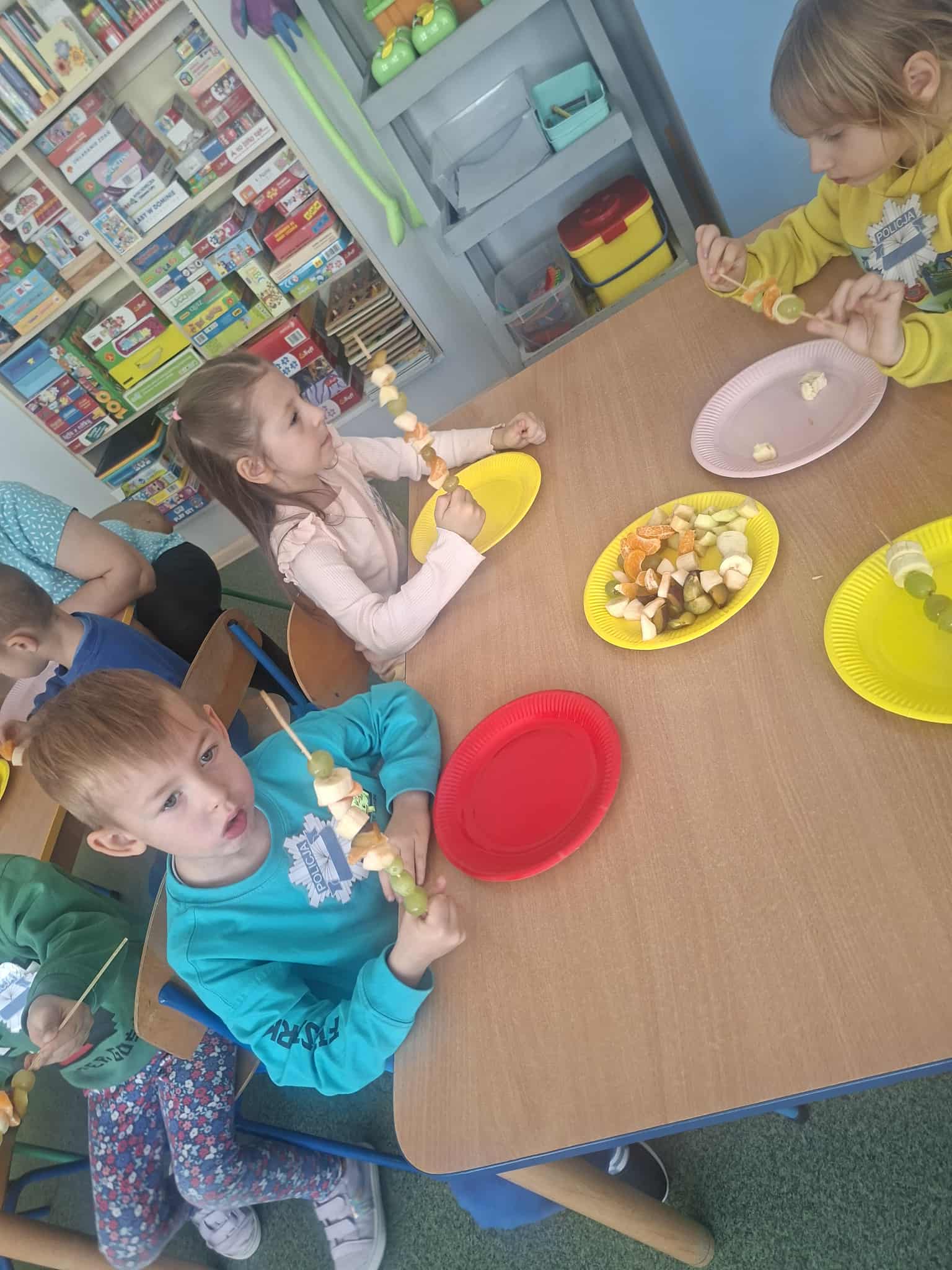 Przez cały tydzień, dzieci poszerzały swoją wiedzę, dotyczacą wartości odżywczych owoców i warzyw. Dzieci uczestniczyły w wyjściu do pobliskiego sklepu, zobaczyć dział warzywny. Odbyła się degustacja wybranych owoców. Dzieci przygotowały własnoręcznie szaszłyki. Rozwiazywały zagadki słuchowe i sensoryczne.