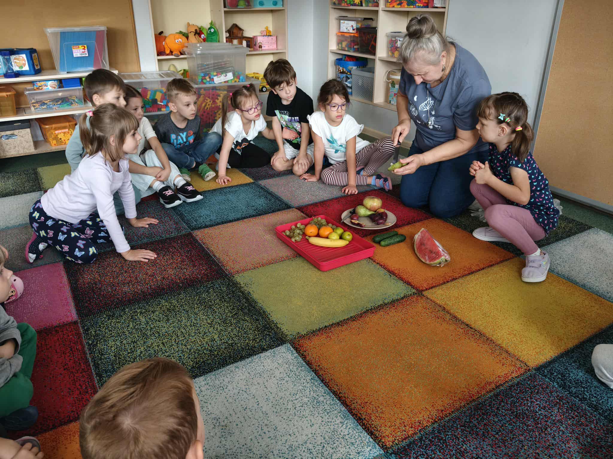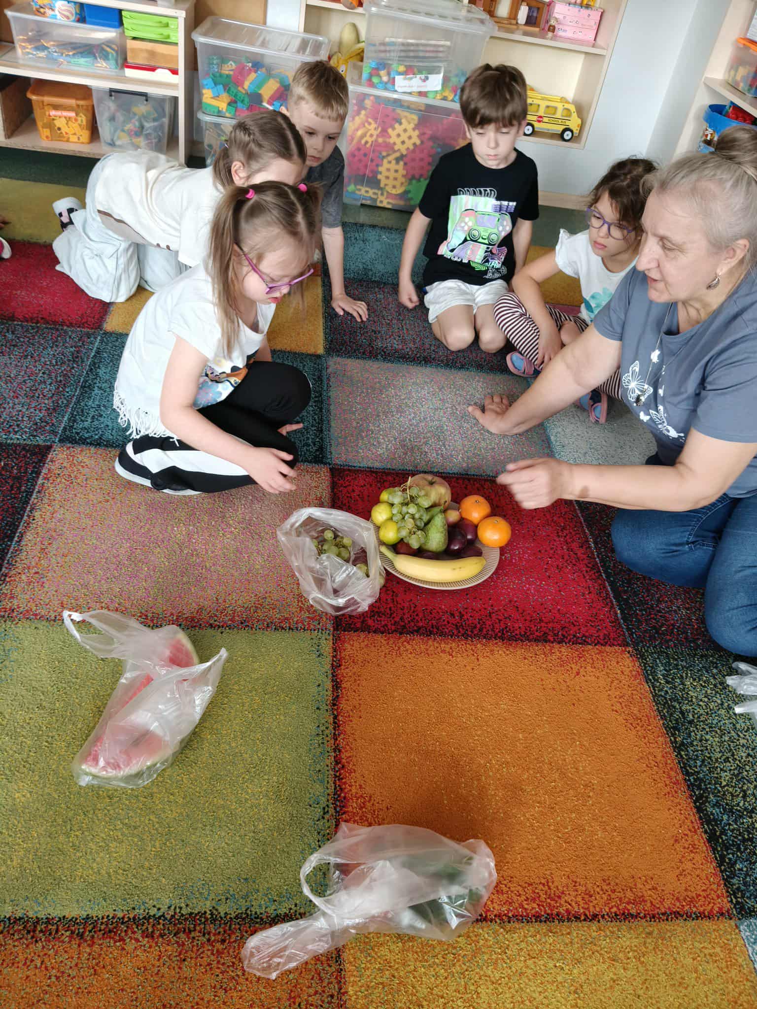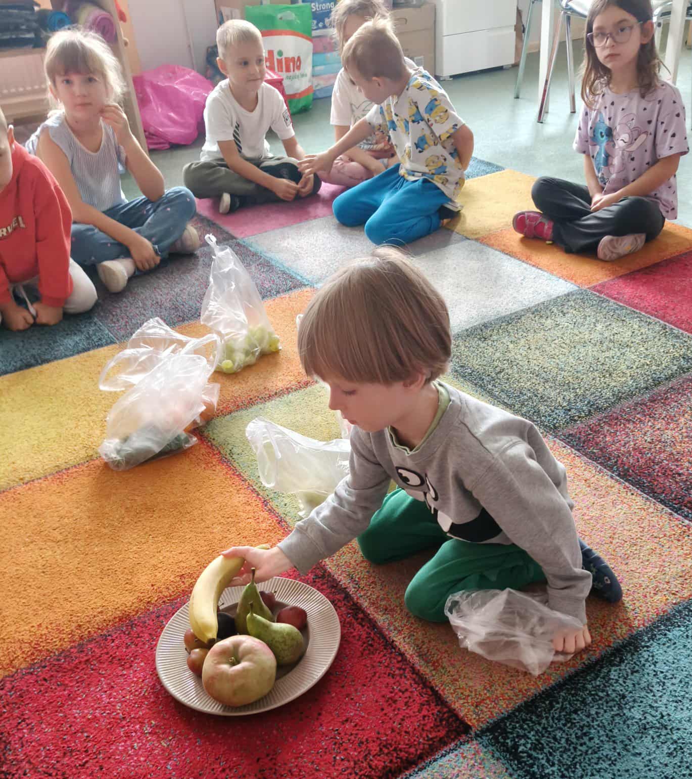 Przez cały tydzień, dzieci poszerzały swoją wiedzę, dotyczacą wartości odżywczych owoców i warzyw. Dzieci uczestniczyły w wyjściu do pobliskiego sklepu, zobaczyć dział warzywny. Odbyła się degustacja wybranych owoców. Dzieci przygotowały własnoręcznie szaszłyki. Rozwiazywały zagadki słuchowe i sensoryczne.