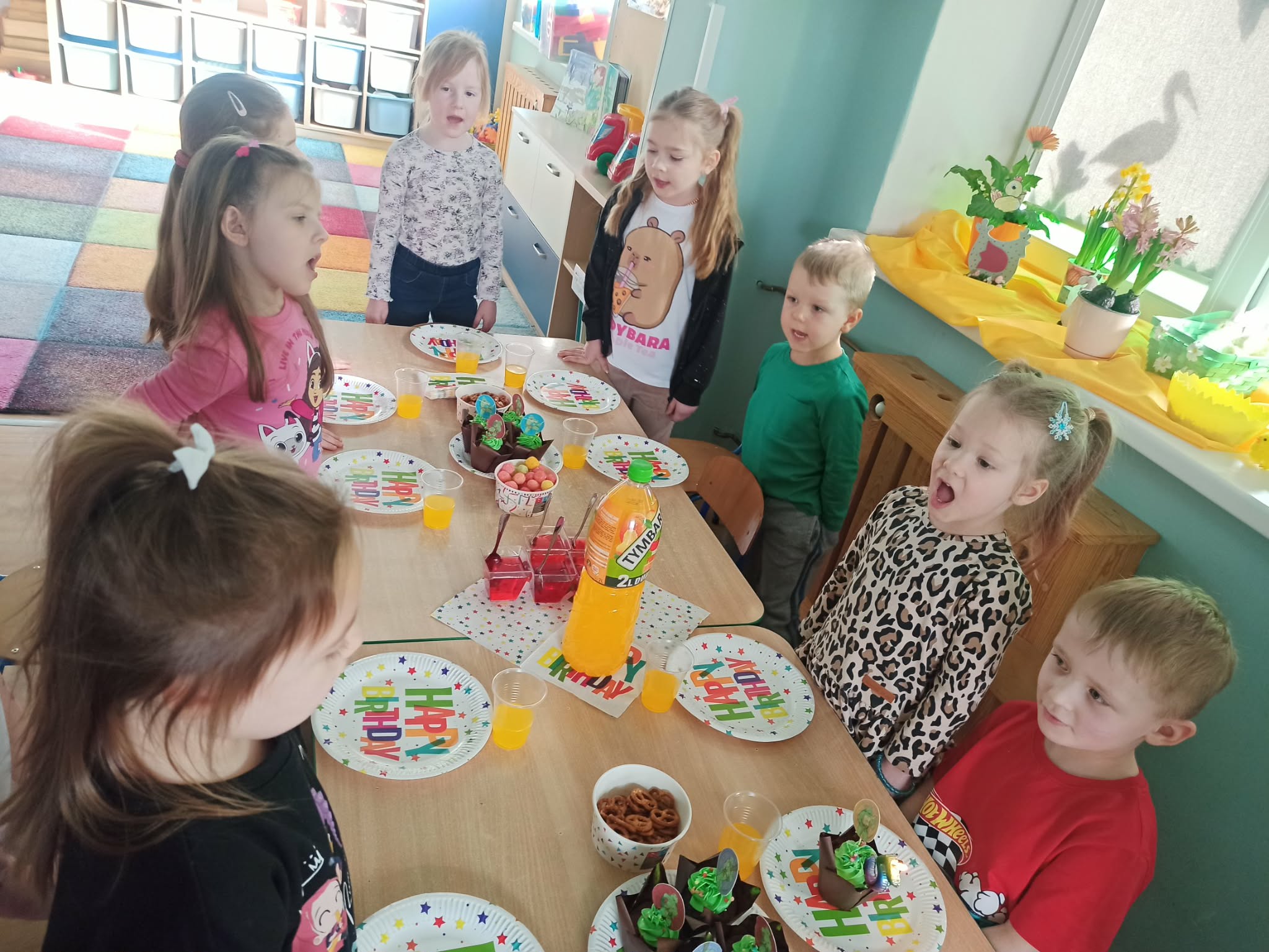Kolejny Lisek świętował swoje 5 urodziny- Jaś. Po uroczystym odśpiewaniu STO LAT dzieci uczestniczyły w zabawach i wspólnych tańcach. Następnie solenizant zaprosił dzieci do słodkiego poczęstunku.