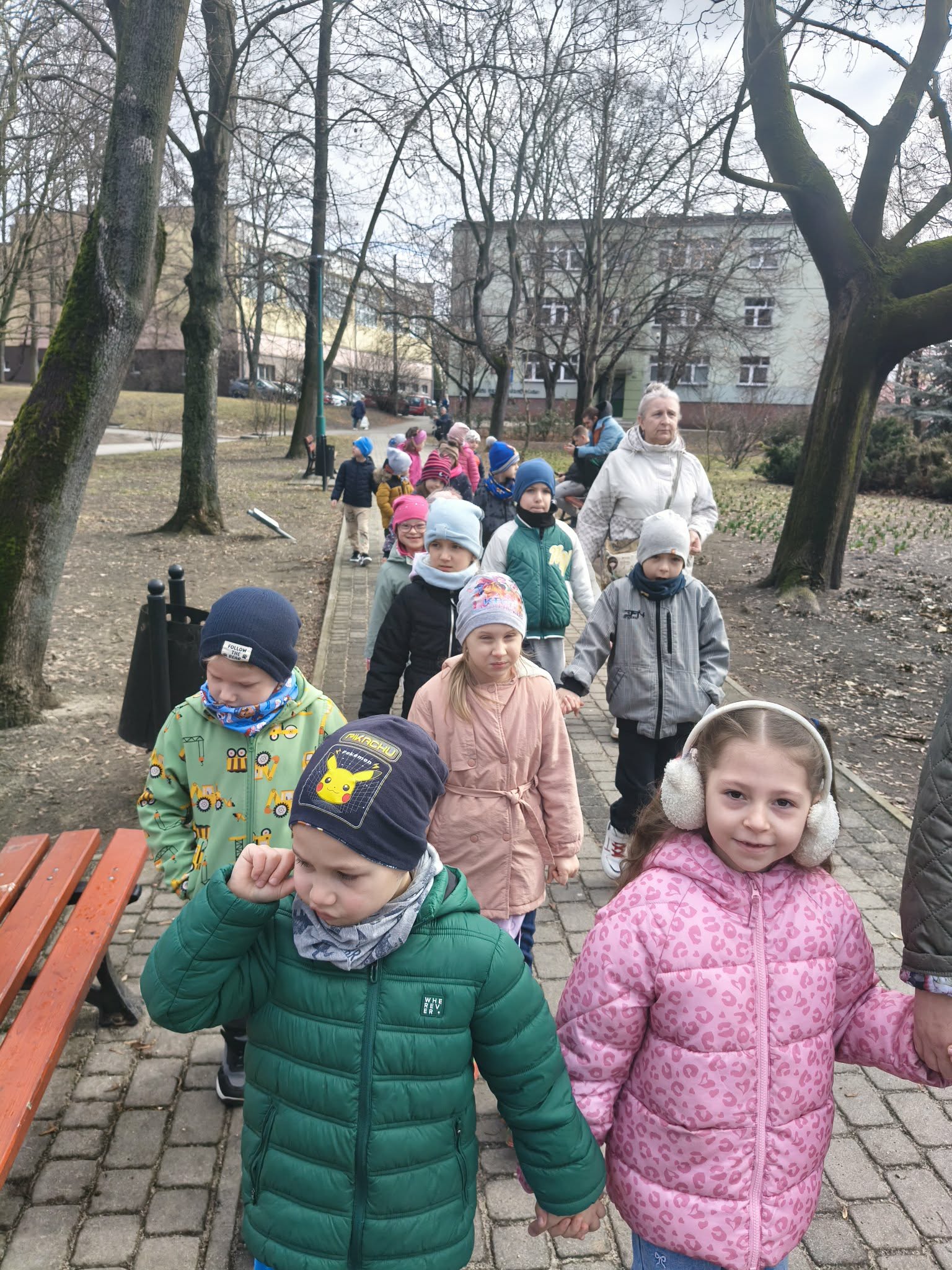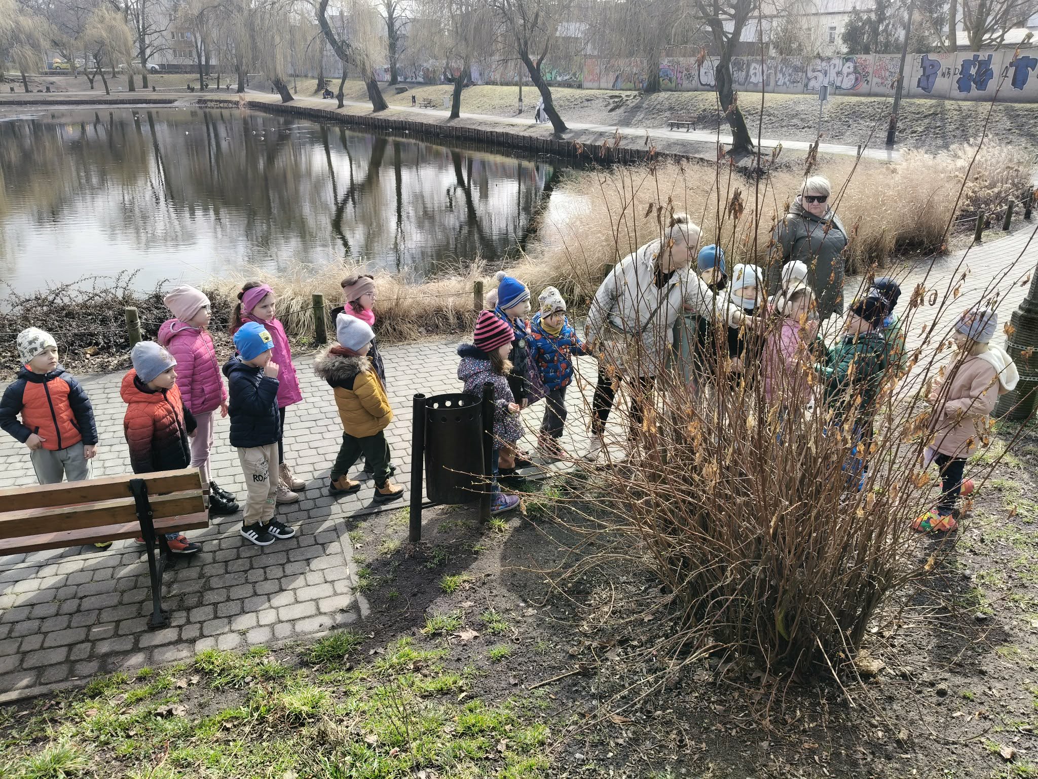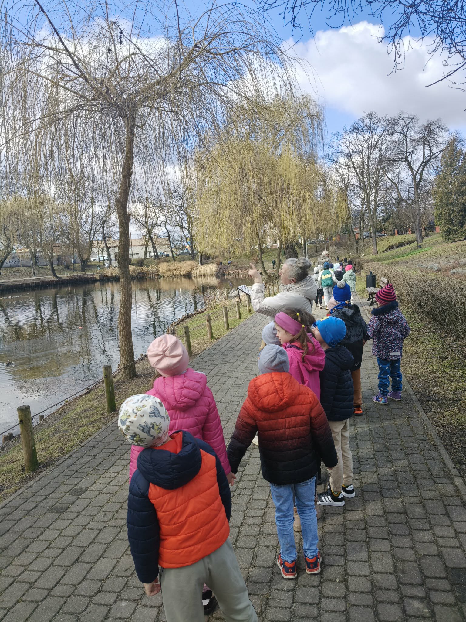 W dniu dzisiejszym wybraliśmy sie do pobliskiego parku, wposzukiwaniu pierwszych oznak nadchodzącej wiosny.