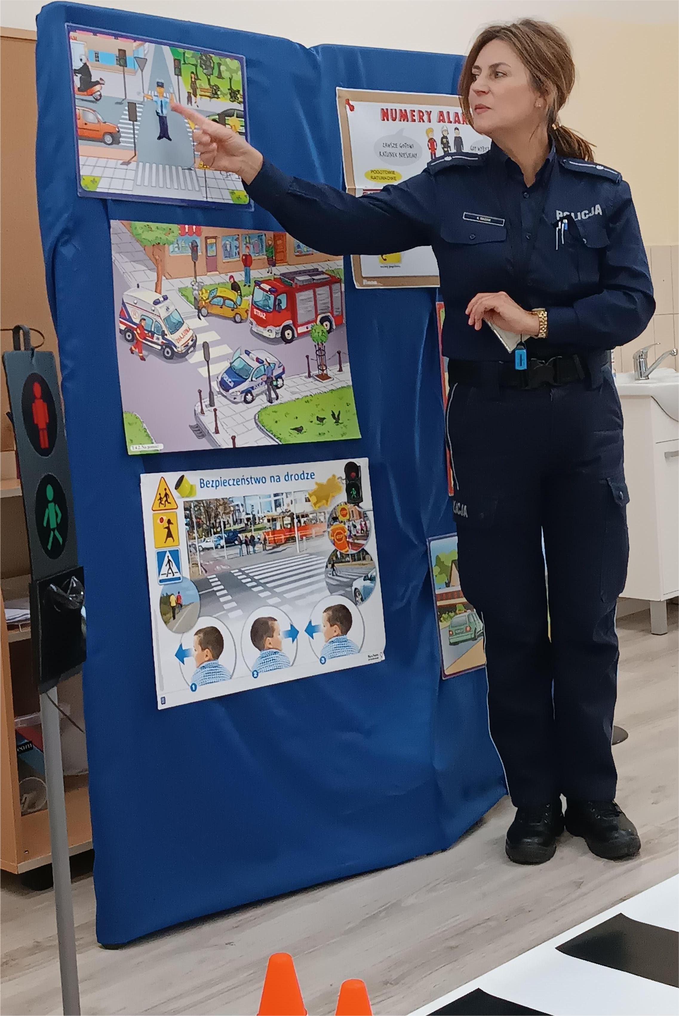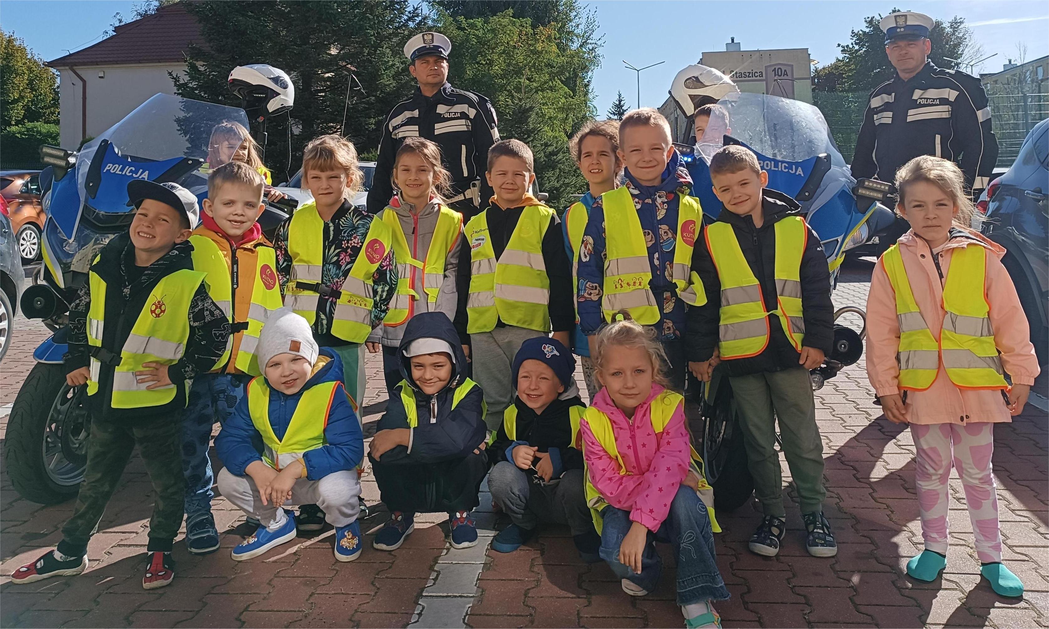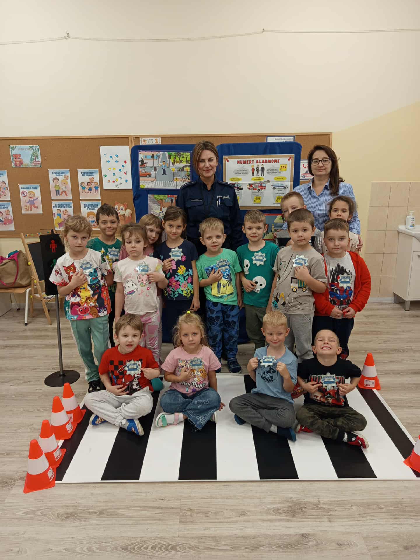 W naszym przedszkolu odbyło się dziś spotkanie z funkcjonariuszami policji. Tematem spotkania było utrwalenie z dziećmi zasad ruchu drogowego. Pani policjantka, w formie praktycznej, przypomniała podstawowe zasady zachowania się podczas przechodzenia przez jezdnię, o konieczności używania kasku podczas jazdy na rowerze oraz o noszeniu elementów odblaskowych. Wytłumaczyła jak należy zachować się w kontaktach z obcymi ludźmi, jak dbać o bezpieczeństwo własne i innych oraz do kogo zwracać się w sytuacji zagrożenia oraz jak powinno być zabezpieczone dziecko w pojeździe podczas podróży. Policjantka poinformowała i zaprezentowała przedszkolakom również , w jaki sposób należy się zachować podczas ataku psa.