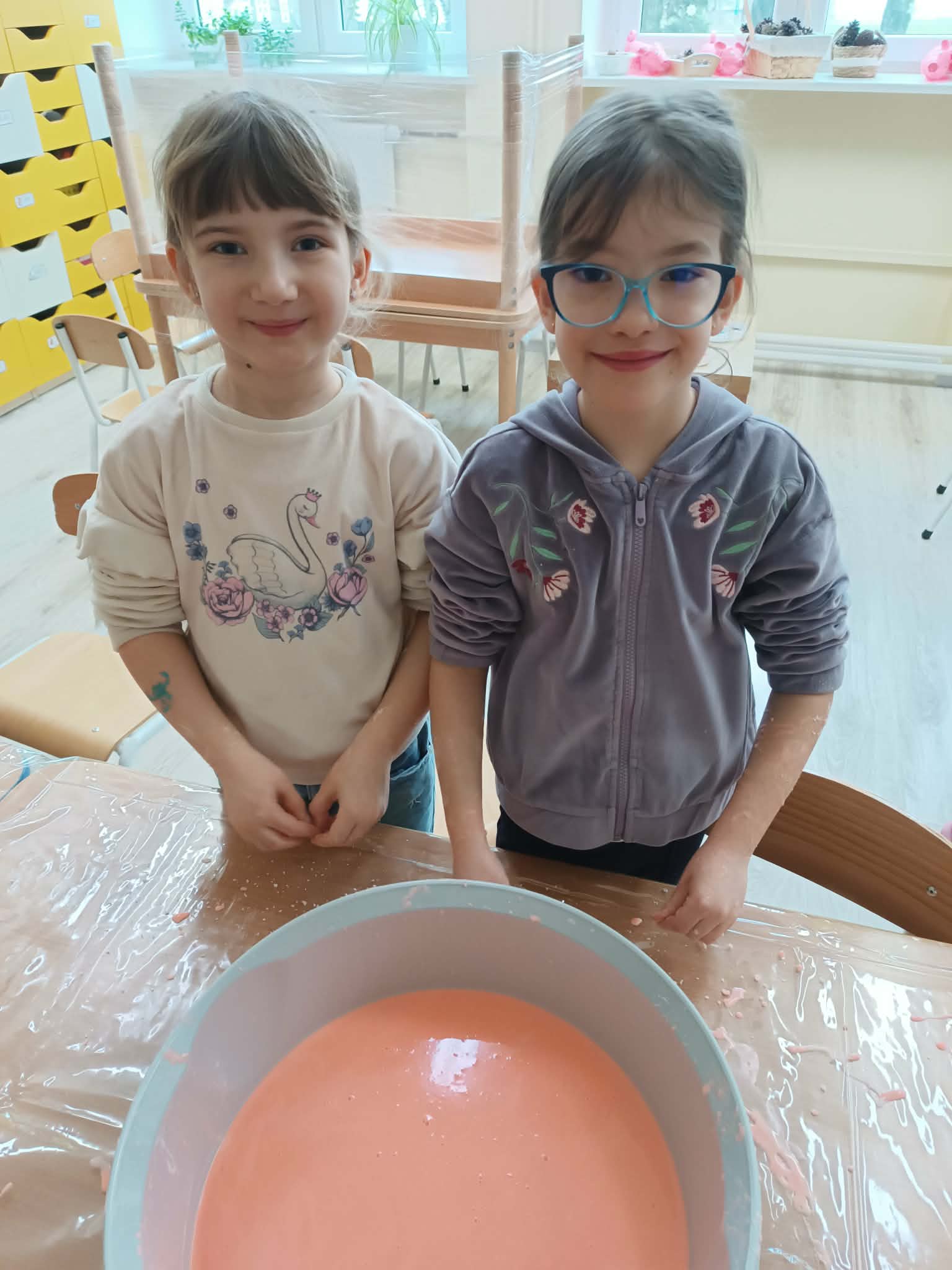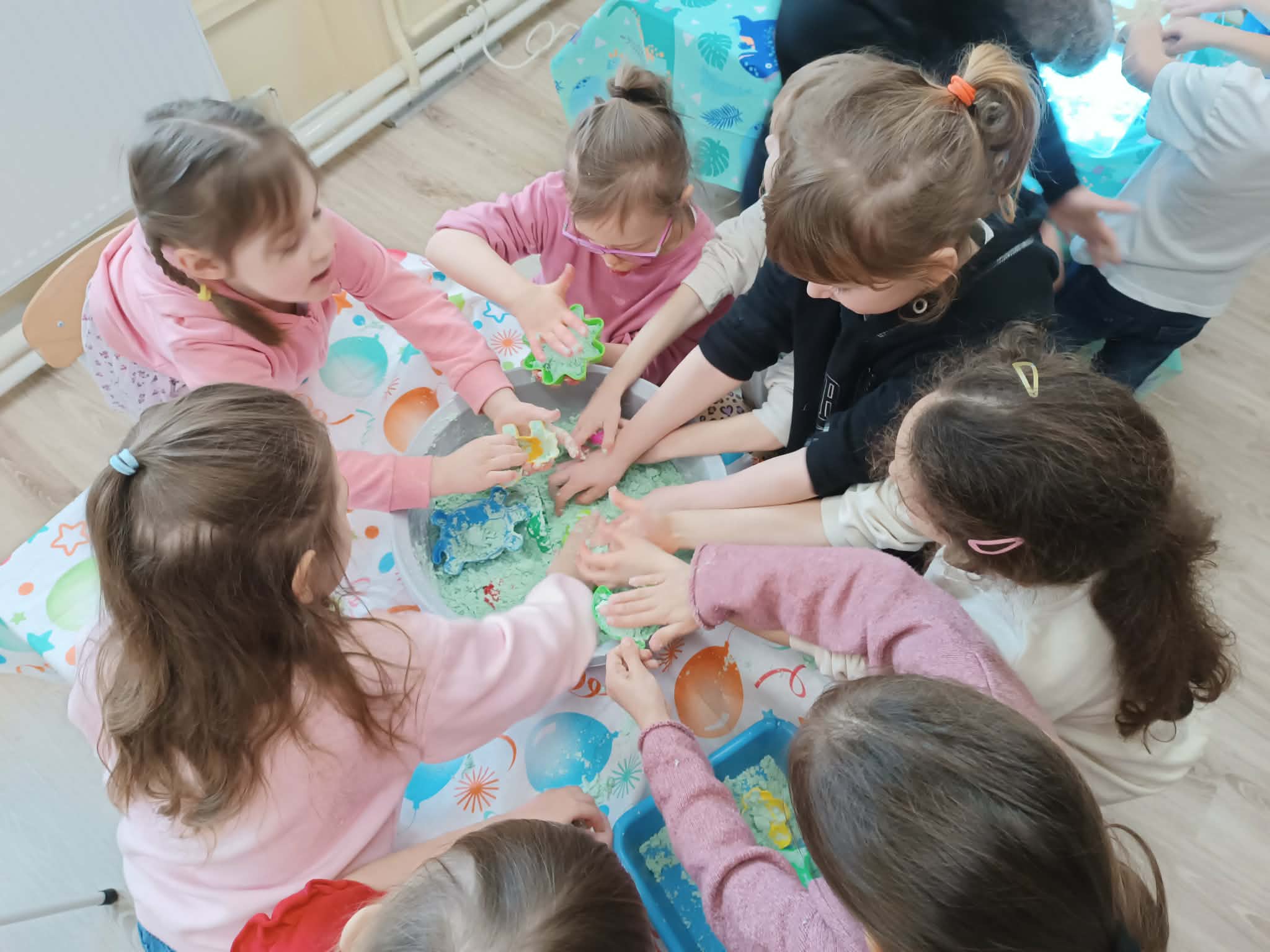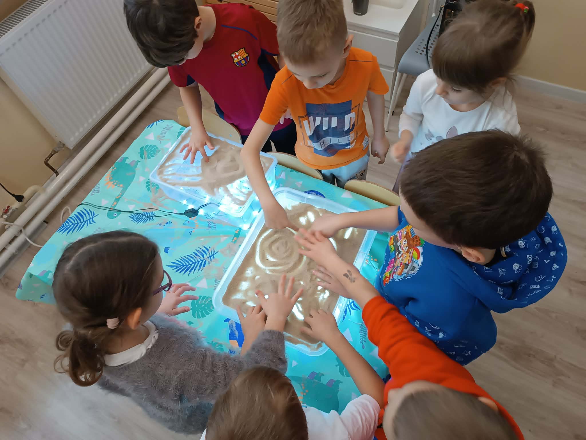 W dniu dzisiejszym dzieci z grupy "Wiewióreczki" i "Zajączki" spędziły czas na zabawach sensorycznych.