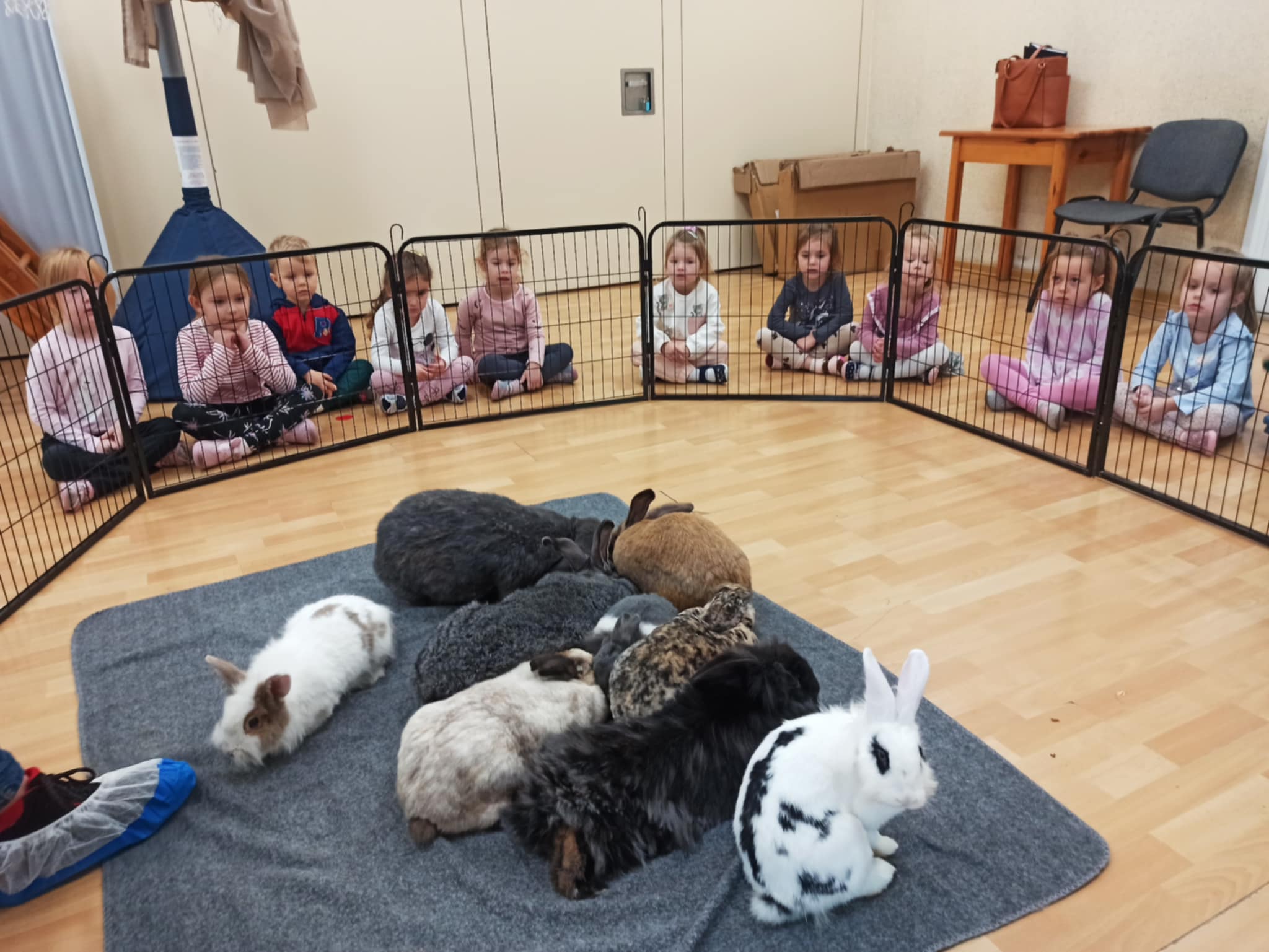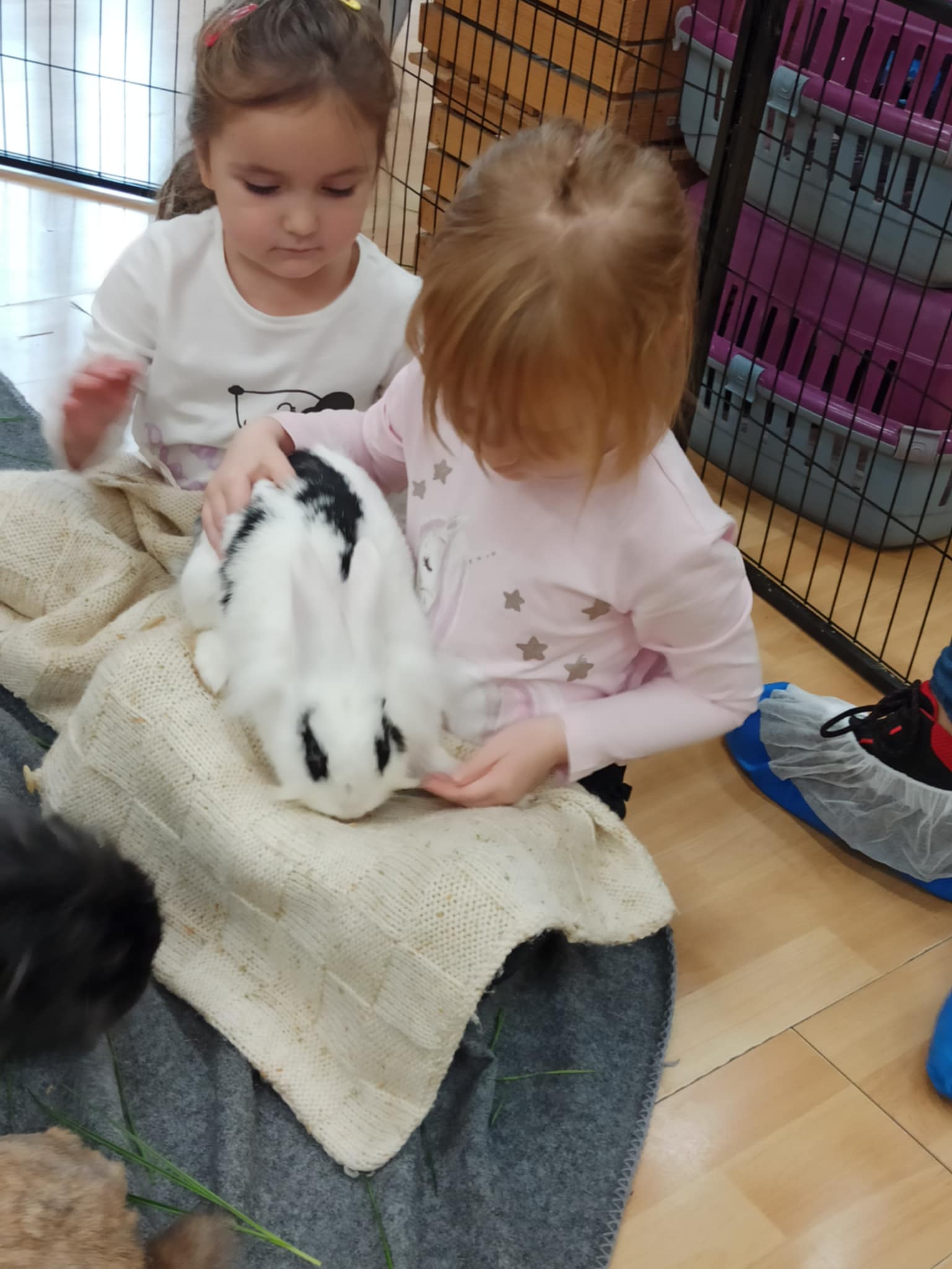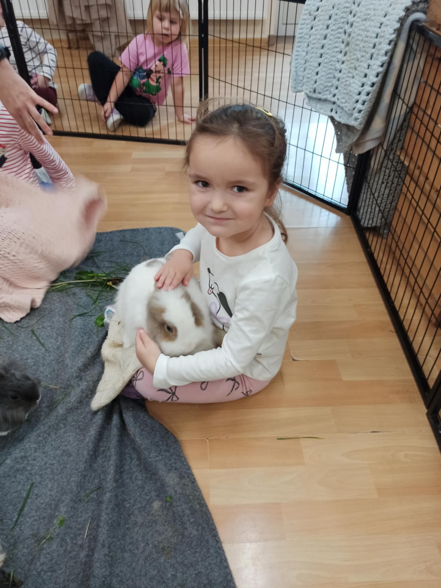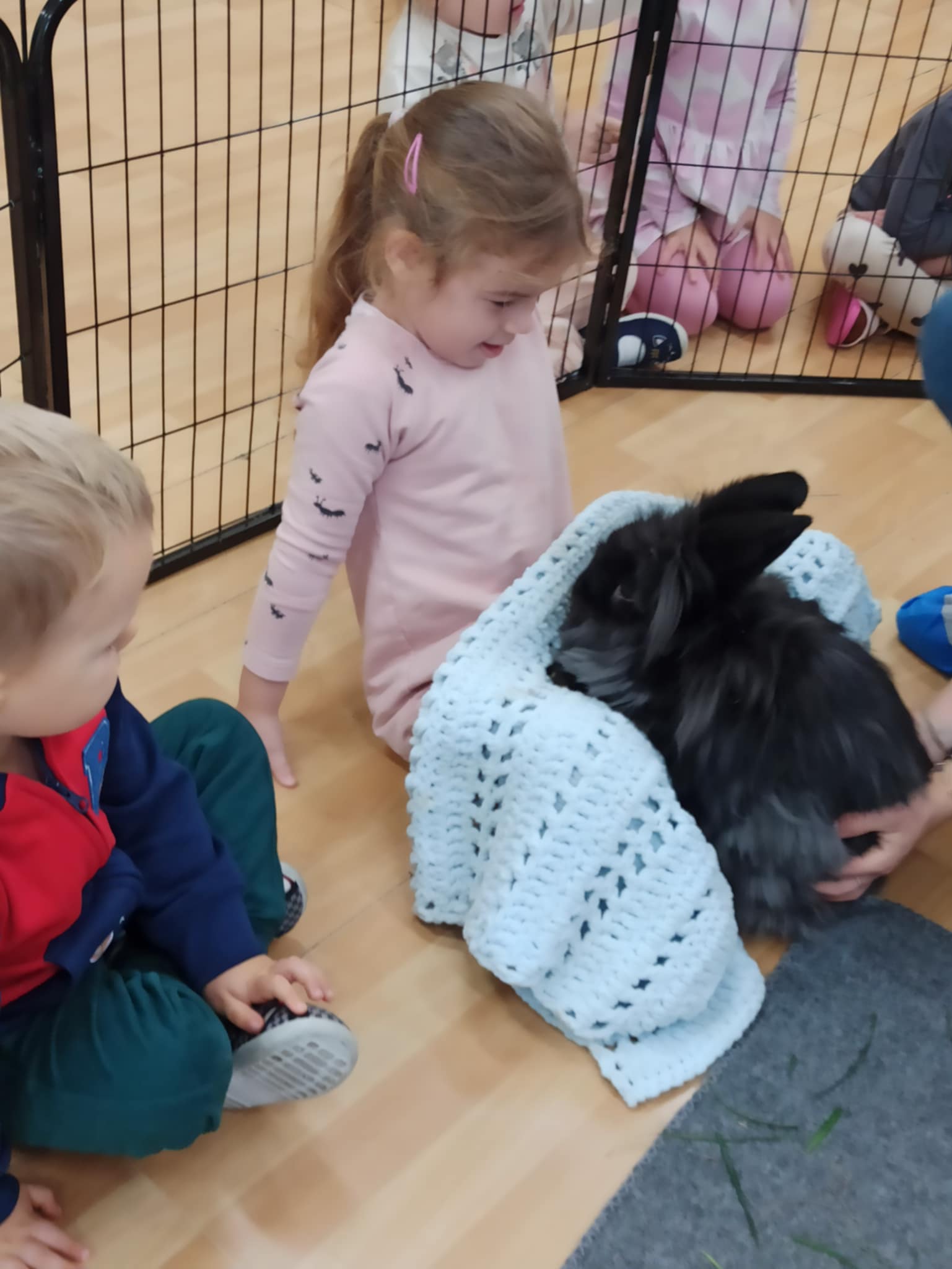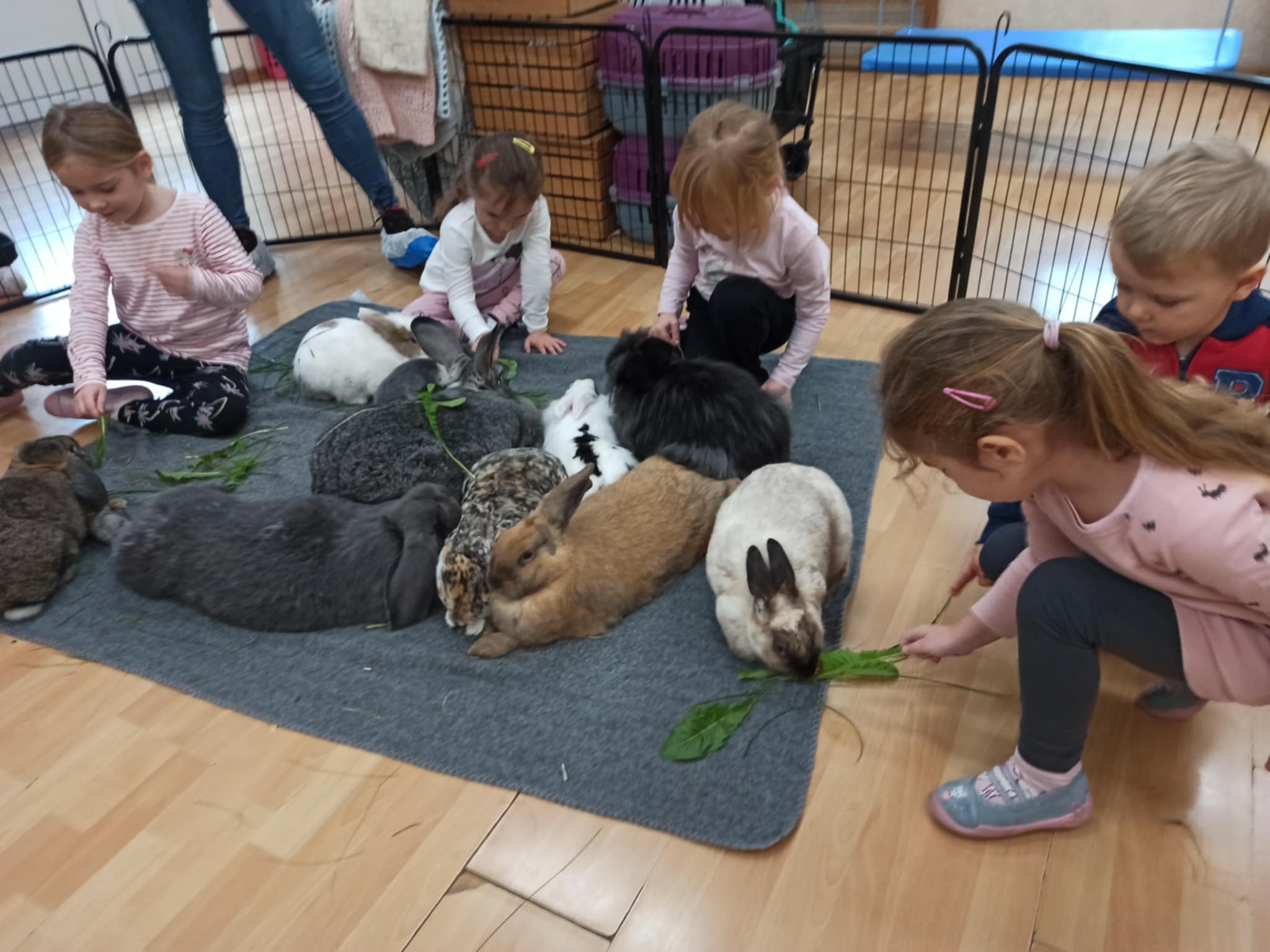 Liski uczestniczyły w zajęciach terapeutycznych z króliczkami (lagoterapia). Dzieci były szczęśliwe mogąc pooglądać te urocze zwierzątka z bliska, a także pogłaskać ich mięciutką i gładką sierść. Przedszkolaki dowiedziały się wielu ciekawostek na temat odżywiania oraz jak należy opiekować się króliczkami.